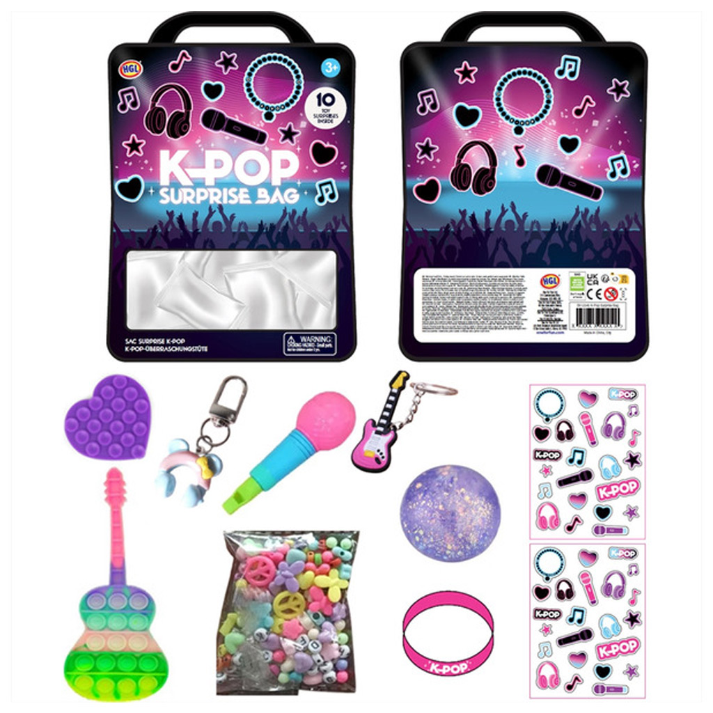 K-POP presenečevalna vrečka nudi pravo doživetje vsakemu glasbenemu navdušencu! V paketu je 10 različnih, naključno izbranih dodatkov, ki pričarajo veselo in barvito vzdušje sveta K-popa. Od nalepk in obeskov za ključe do ustvarjalnih igrač — vsak izdelek je edinstven in zabaven.