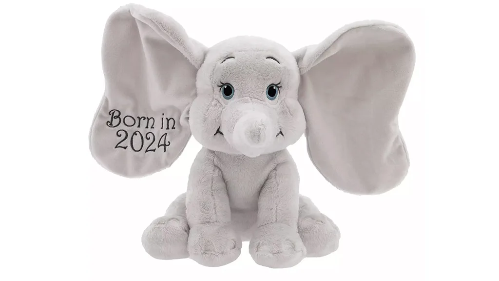 Dajte dojenčkom zgodnjo predstavitev v svet Disneya s tem ljubkim plišastim Dumbom, v katerega je eno uho vezeno z "Rojen leta 2024".