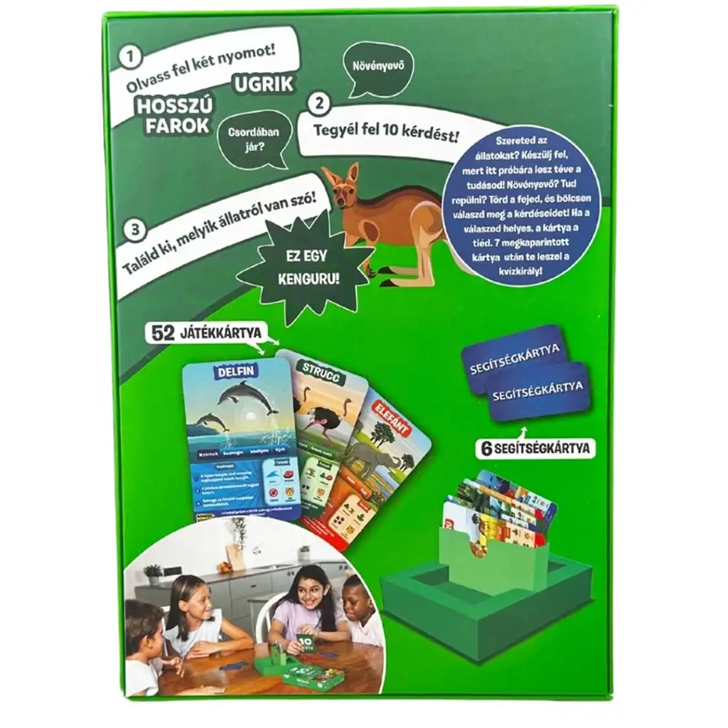 Raziskujte čudoviti svet živali z igro 10 Kviz – Neverjetni svet živali! V igri vas čaka 52 posebnih živali, ki jih lahko spoznate. Postavljajte pametna vprašanja, na primer: "Je ta žival plenilec? Živi sama ali v skupini?" Z vsakim vprašanjem se približate pravilnemu odgovoru in s tem tudi zmagi. Med igro se ne boste le zabavali, ampak boste izvedeli tudi veliko novih informacij o živalih, medtem ko se družina ali prijatelji igrajo in učijo skupaj. Kartna igra 10 Kviz je prenosljiva, zato jo lahko enostavno vzamete s seboj kamorkoli, naj bo to družinsko srečanje ali dolga pot. Cilj je biti najhitrejši pri prepoznavanju živali in tako pridobiti največ kart!