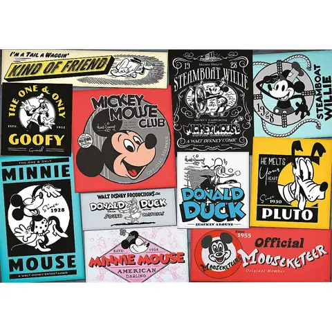 Ta super plakat obuja Disneyjevo preteklost, na njem pa lahko vidimo najbolj priljubljen Disney lik, ki ni noben drug, kot pa Miki Miška, na sliki pa so svoje mesto dobili tudi njegovi prijatelji, Jaka Racman, Pepe in Pluton, v obliki starih plakatov. Sestavljanka se sestoji skupaj iz 1.000 drobnih koščkov, za kar potrebujemo potrpežljivost in dobre opazovalne sposobnosti, vendar pa bo končni rezultat vsekakor vreden tega, saj je lahko tudi lep okras sobe. Priskrbite ga vašemu otroku čim prej, odlična izbira pa je tudi za darilo.