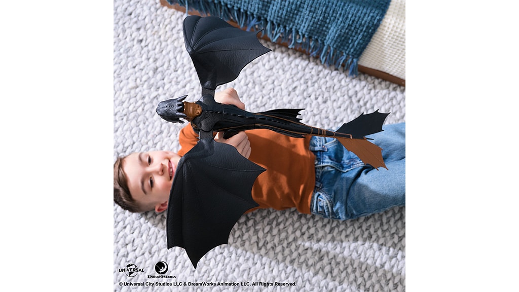 Ta plišasta igrača ni le popolna za crkljanje, ampak zna tudi leteti! Navdihnila jo je Brezzobi iz filma Zmaji: Gospodar zmajev, ta mehki zmaj pa se zahvaljujoč vgrajenemu mehanizmu frače čarobno dvigne v zrak. Po dolgem, razburljivem dnevu letenja se zmajeva krila zložijo navznoter in jih je mogoče hitro pritrditi na otrokovo roko, tako da se lahko kjerkoli in kadarkoli razvajajo z luskastimi objemi. Ta posebna plišasta igrača v vsakdan prinaša ne le igro, temveč tudi prijetne trenutke in je lahko popoln spremljevalec za vsakega malega ljubitelja zmajev!