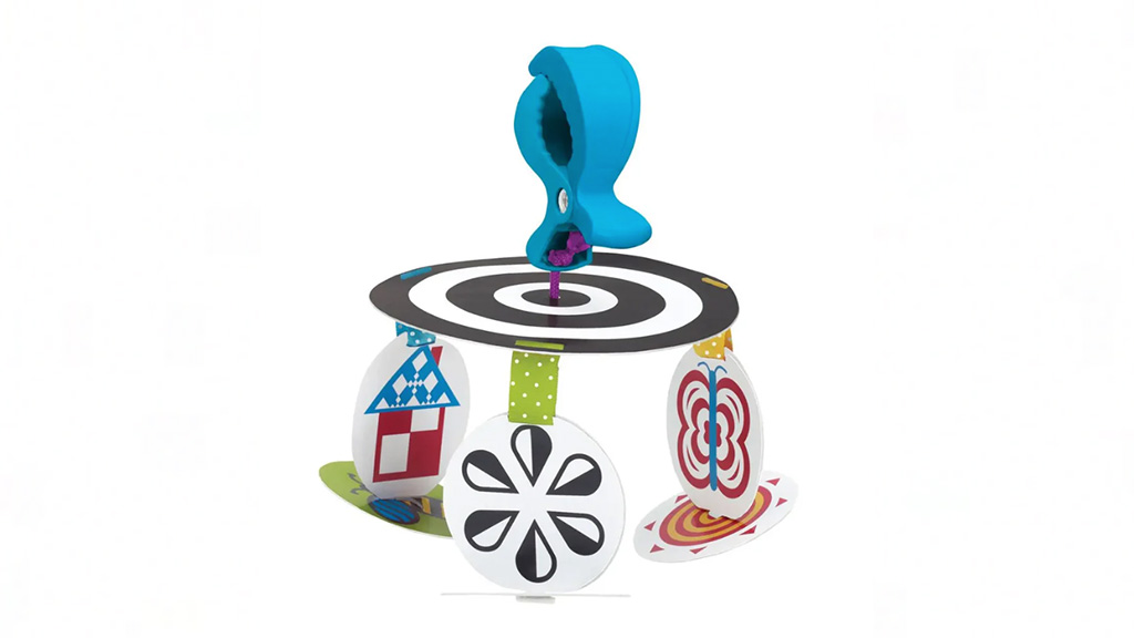 Pozdravi smeh na poti s to prenosno mobilno igro! Ta kompaktna igra vsebuje šest obojestranskih kartic z osupljivimi, visokokontrastnimi slikami. Preprosto jo pritrdite na večino otroških vozičkov in takoj pričarajte nasmeh na obrazu vašega malčka med vsakim sprehodom. Ta igra ni le zabavna, ampak tudi razvija otrokovo vizualno zaznavanje in pomaga pri zgodnjem učenju. Zaradi lahke in trpežne zasnove jo lahko vzamete kamorkoli, tako da smeh nikoli ne bo izostal.