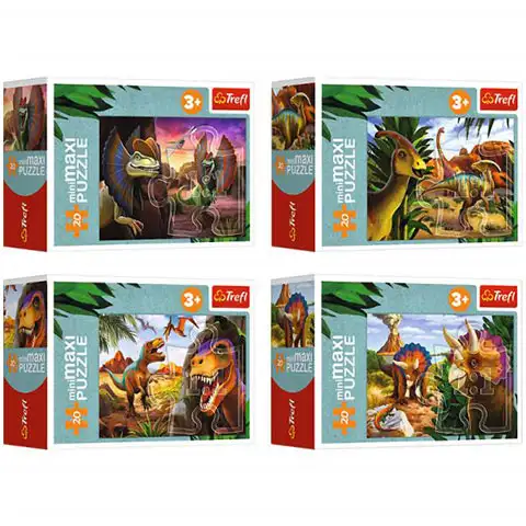 Na 20-delni MiniMaxi sestavljanki, ki je na voljo v skupno štirih različnih izvedbah, se lahko srečamo z dinozavri, zahvaljujoč velikim sestavnim delom pa jih lahko vaš otrok začne uporabljati že od tretjega leta starosti naprej in z njihovo pomočjo razvija svoje ročne spretnosti, spomin in tudi sposobnosti koordinacije gibanja. Vsak posamezni kos sestavljank se popolnoma ujema z drugimi, zahvaljujoč čemur se lahko sestavljena slika uporabi tudi kot plakat.