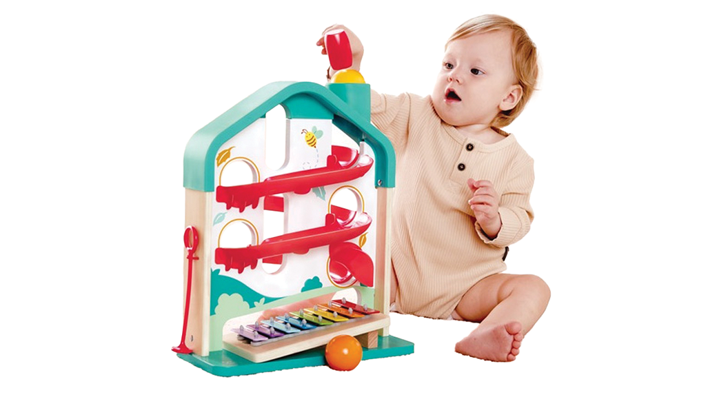 Otroci se lahko potopijo v svet multifunkcionalne igre s tem igralnim setom. Ko malčki udarijo lesene kroglice skozi dimnik na vrhu, da te zdrsnejo po zaviti stezi in prečkajo barvne zvoke ksilofona, lahko odkrijejo osnovne glasbene koncepte. Set vključuje dve kroglici, snemljiv ksilofon in palico.