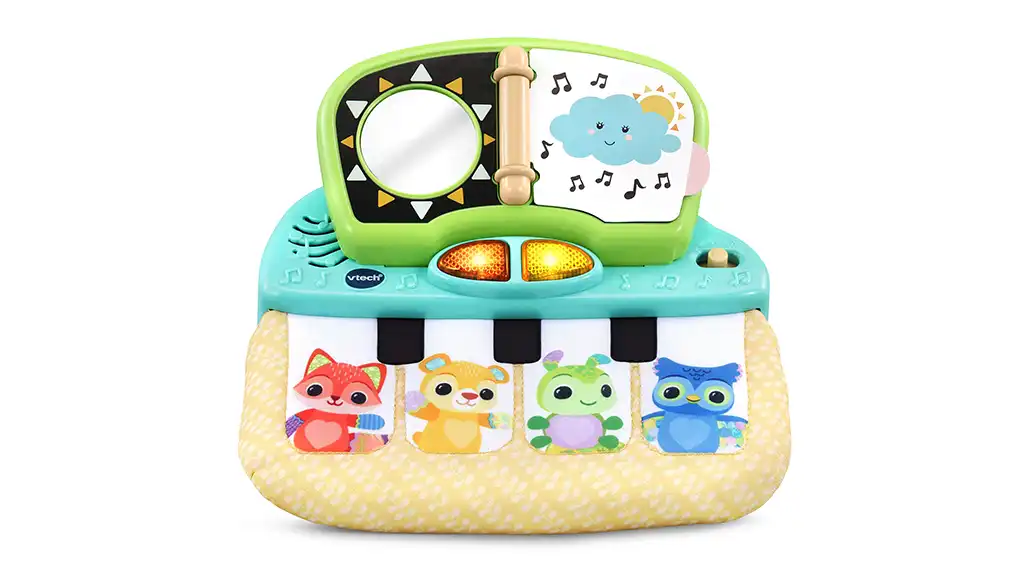 Ta tri-v-enem komplet zaposli dojenčke, medtem ko gradijo svojo mišično moč. Ko se dojenčki naučijo ciljati, lahko odkrijejo klavir tako, da pritiskajo na tipke in listajo, da slišijo pesmi in besede. Ko dojenčki začnejo hoditi, lahko uporabijo ročaj, da vzamejo klavir s seboj.