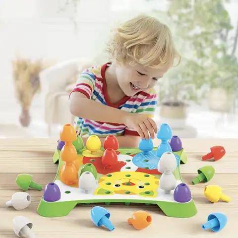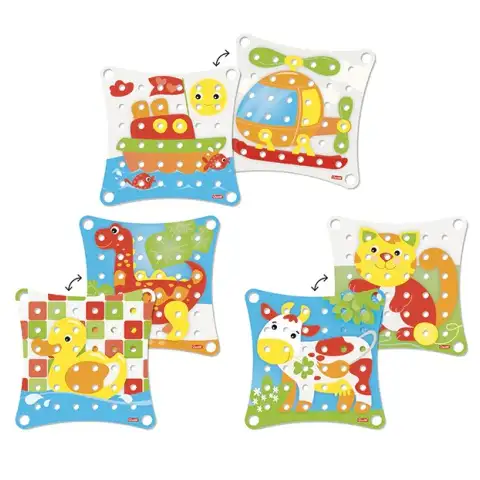 Igrače z bucikami otrokom ne ponujajo le odlične zabave, ampak tudi razvijajo fino motoriko ter koordinacijo oči in rok. Ta 41-delni set Jumbo Peggy je odlična izbira za otroke, stare dve leti, saj je večje bucike enostavno prijeti in jih je lažje postaviti na tablo kot manjše. Pisane slike z različnimi vzorci, postavljene na tablo, vam bodo pomagale postaviti bucike in narediti čas igranja še bolj razburljiv. V setu so bucike v 7 različnih barvah.