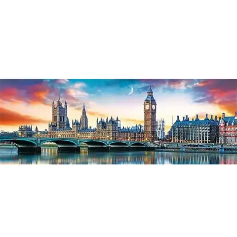 Big Ben, angleški parlament in Westminstrska opatija zagotovo spadajo med najbolj ikonske simbole Londona, ta sestavljanka bo tako zagotovo pričaral čudovito lepo sliko angleškega glavnega mesta. Pravo edinstvenost pa dopolnijo posebne barve neba. Deli Trefl sestavljank se popolnoma prilegajo med sabo, zahvaljujoč brezkompromisni izdelavi in profesionalnemu tisku pa je sestavljena slika sapo jemajoča in barvita. Panoramske slike bodo izjemni okras katerekoli sobe.