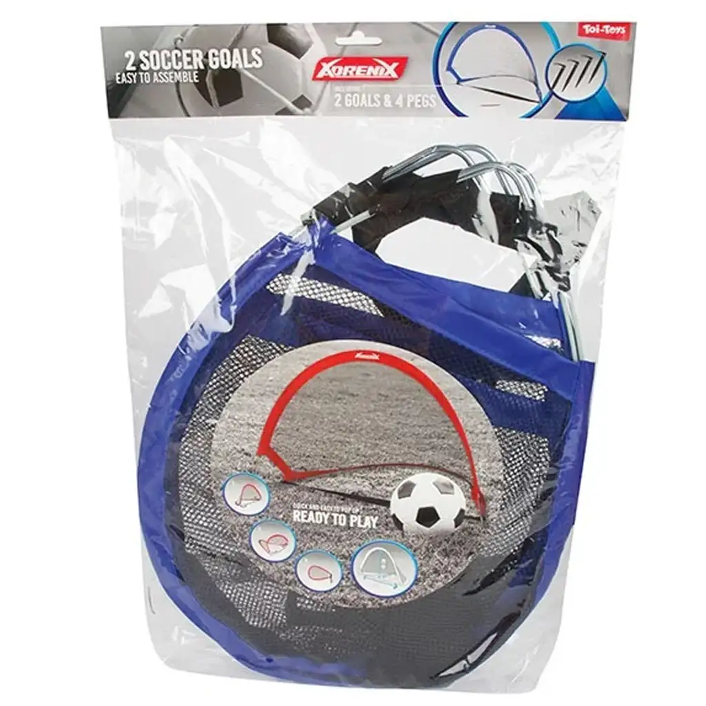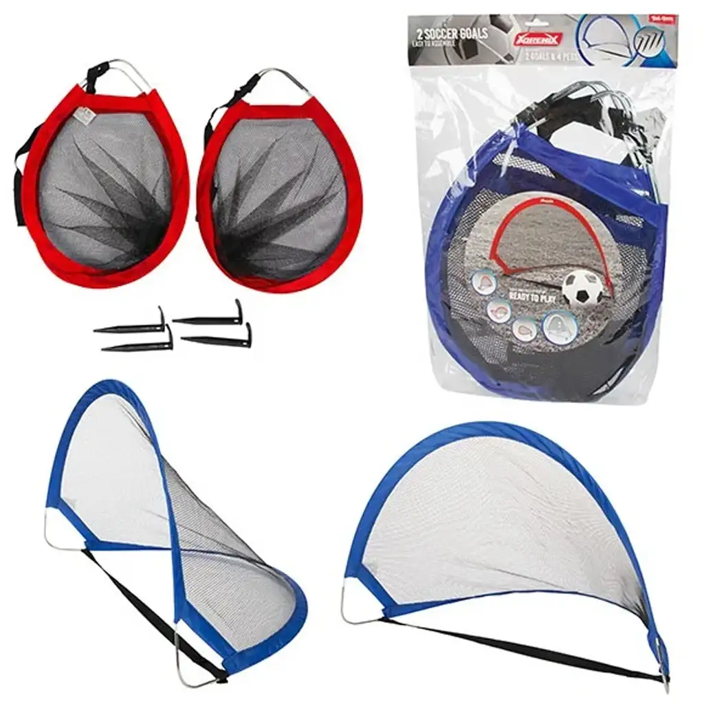 Set vsebuje dva mrežasta gola, ki ju je mogoče preprosto razpreti in postaviti v nekaj sekundah. Za stabilnost so opremljeni s pritrdilnimi klini, tako da ostanejo goli na mestu tudi ob močnejših brcah. Zaradi lahke konstrukcije jih lahko otroci enostavno premikajo in upravljajo.