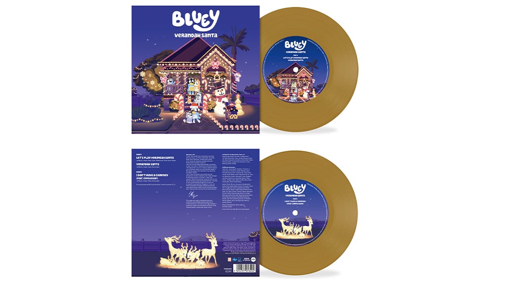Pritisni gumb »Igen« med gumbi »Yes« in »No«, da si pridobiš ta božični album Bluey! Bluey Verandah Santa bo izšel na CD-ju in na glasbenih pretočnih storitvah 7. novembra. Tri pesmi z albuma bodo debitirale tudi na 7-palčnem belem vinilu, prav tako bo na voljo Walmart ekskluzivni 7-palčni zlati vinil. Ta posebna izdaja je popolno darilo za vsakega oboževalca Blueyja in bo v tvoj dom pričarala pravo praznično vzdušje!Medtem ko čakamo na to glasbeno božično darilo, lahko družine že zdaj poslušajo pesem »Verandah Santa« na vseh glasbenih pretočnih storitvah. Če želiš poslušati to veselo praznično skladbo in si vnaprej shraniti album, obišči uradno spletno stran! Za glasbene igre in še več Bluey glasbe lahko skrbniki najdejo dodatne vsebine na spletni strani Bluey. Skupaj odkrivajte božično vzdušje in uživajte v skupnih glasbenih doživetjih!