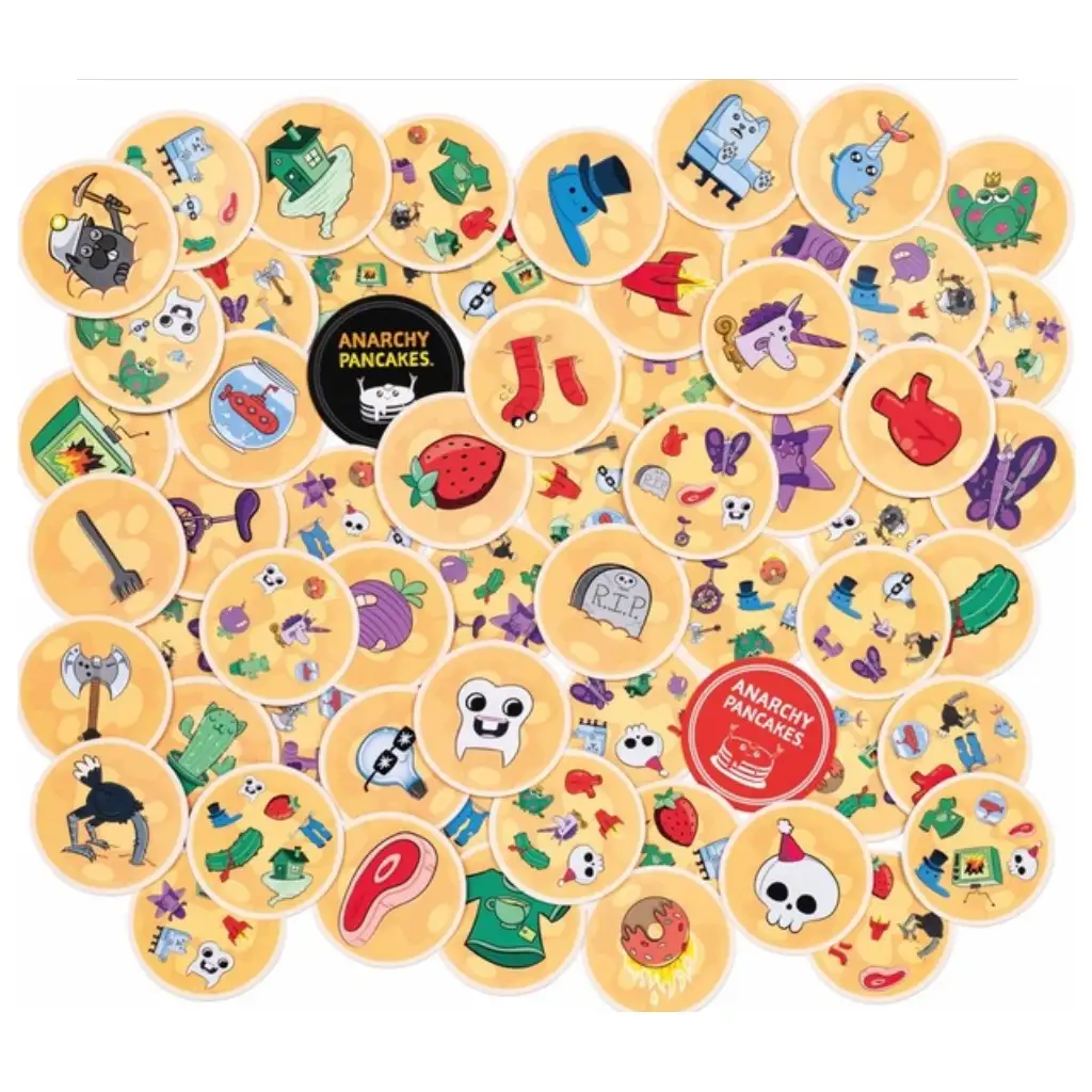 Anarhistična palačinka je igra s kartami, ki bo zagotovo pospešila srčni utrip! To je duhovita stvaritev ustvarjalcev Eksplozivnih mačk in Dobble, žepna, hitra družabna igra, kjer morate na palačinkah z zabavnimi slikicami najti skupne elemente z drugimi igralci, medtem ko so vse karte hkrati v igri. Na vsaki točki mize lahko najdete smešne figure, cilj pa je, da se čim prej znebite svojih palačink, tako da jih zlepite z drugimi, s čimer povzročite zmedo drugim. Preizkušate svojo pozornost in hitrost, da bi osvojili kos masla, in če imate srečo, lahko dosežete tudi dva kosa masla za zmago!