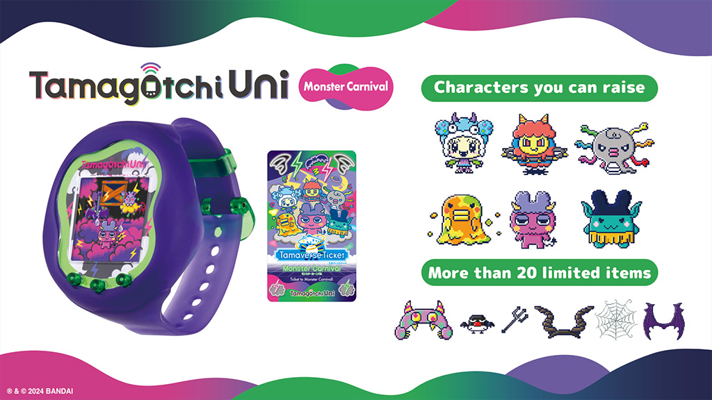 Vstopi v svet Tamaverse z drugo serijo naprav Tamagotchi Uni. Ta kolekcija vključuje nove ohišja in pasove, omejene izdaje likov in mini igre. Angel Festival prinaša ljubko vzdušje z roza pasom in pastelnimi barvami. Monster Carnival pa ve, kako se zabavati s svojim drznim in punk dizajnom, ki vključuje temno vijolične in neon zelene barve.