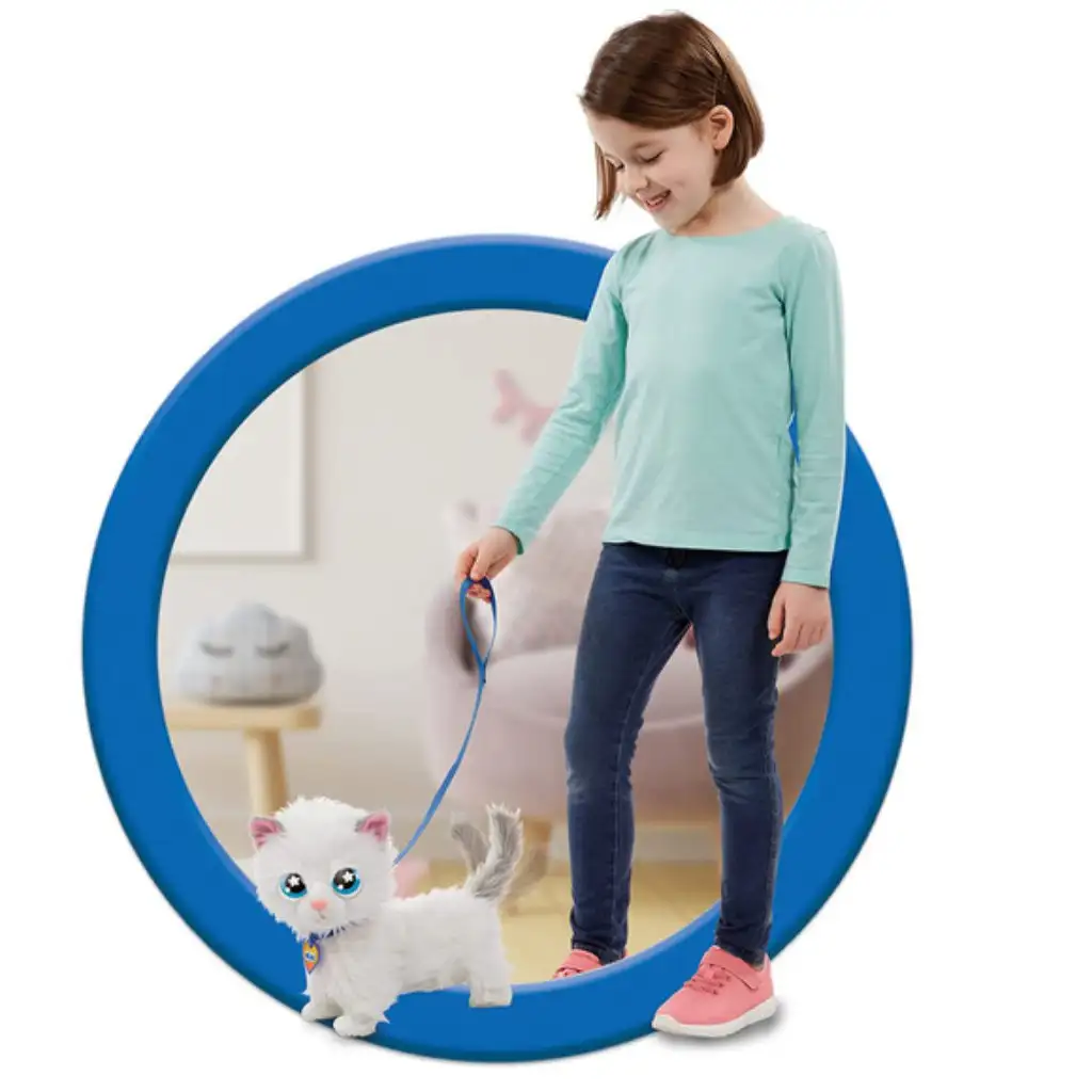 Animagic - Mimi mačka je popolna izbira za vse otroke, ki imajo radi hišne ljubljenčke in iščejo ljubkega, interaktivnega spremljevalca! Mimi, očarljiva bela mačka, ni le mehka in prijetna za objemanje, ampak s svojimi interaktivnimi funkcijami naredi igro še bolj zabavno. Ko jo pobožaš po glavi, veselo začne hoditi, maha z repkom in te pozdravi z ljubkim mijavkanjem. S priloženim povodcem jo lahko pelješ na sprehod, kar ti daje občutek, kot da sprehajaš pravega hišnega ljubljenčka.