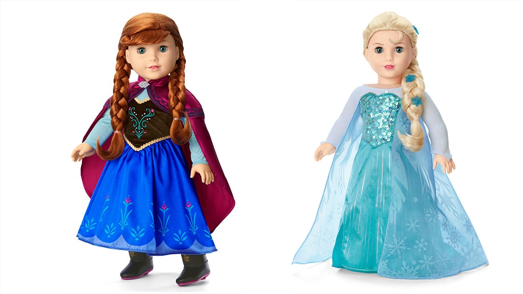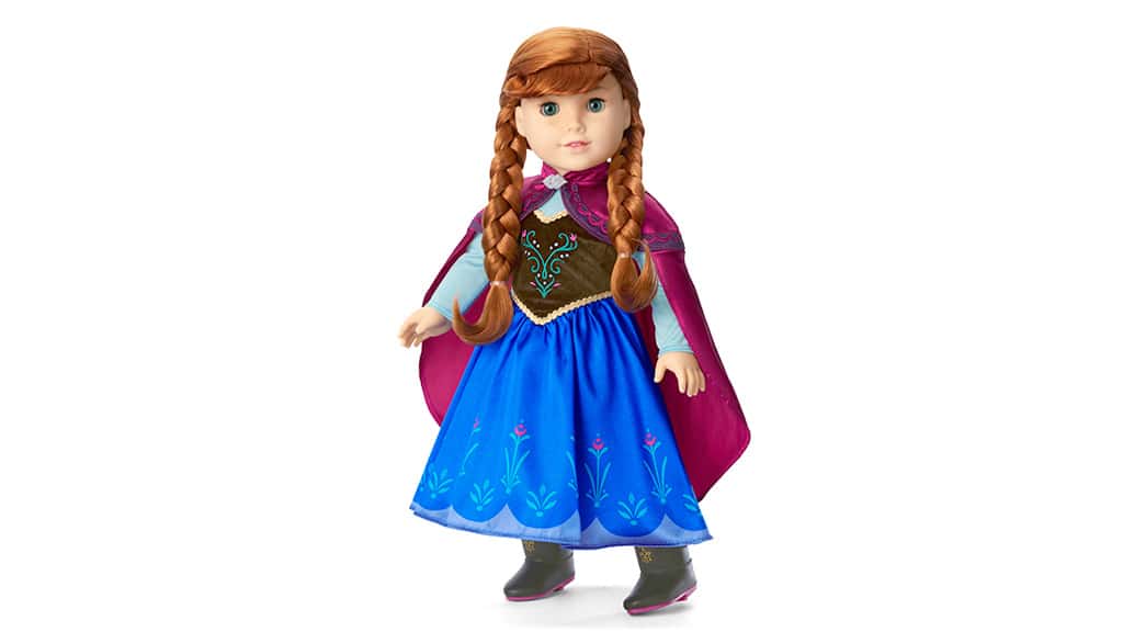 Lutka Elsa je utelešenje prefinjenosti in kraljevske elegance v svoji svetlo modri obleki, ki jo krasijo satenasti zgornji del, bleščeči bleščice in sijoč vzorec snežinke. Njeni dolgi, ob strani spleteni lasje in sijoče modre oči dopolnjujejo ikoničen videz. Lutka American Girl poleg tega prihaja z visokimi petami, tremi sponkami za lase in številnimi dodatki, da bo igra še bolj zabavna in čarobna za vsakega otroka.Annini rdečerjavi kitki in pegice se popolnoma ujemajo z njeno črno žametno in kraljevsko modro obleko, ki jo dopolnjuje dolg, magenta plašč, črni škornji in dodatki. Obe lutki imata mehko, bombažno telo, njuna glava in okončine so gibljive, oči pa se lahko odpirajo in zapirajo, zato so pustolovščine, ki vodijo skozi gozdove in gore, resnično življenjske! Te podrobno izdelane lutke ne le, da naredijo igro bolj razburljivo, ampak tudi spodbujajo domišljijo otrok, medtem ko z njimi izmišljajo in doživljajo nove zgodbe.