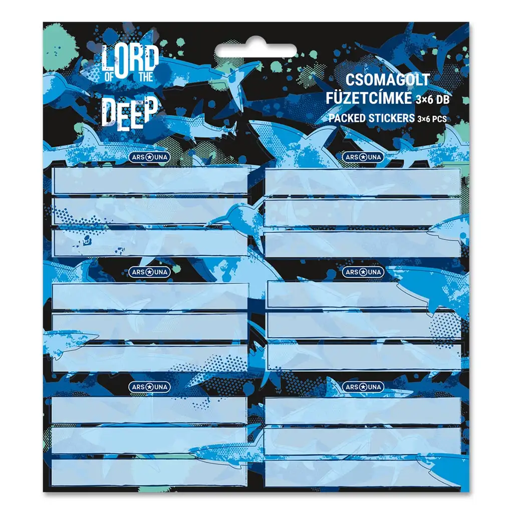 Ars Una "Lord of the Deep" morski pes nalepke za zvezke so namenjene ljubiteljem globokomorskih avantur, da svoje šolske potrebščine naredijo edinstvene. Pojav morskih psov na modrem oceanskem ozadju prinaša vznemirljivo vzdušje v vsakdan. V paketu so 3 listi, na vsakem po 6 nalepk z morskimi psi, skupaj torej 18 nalepk, ki omogočajo, da zvezki niso le prepoznavni, ampak tudi privlačni. Samolepilne nalepke se lahko enostavno namestijo in odstranijo brez ostankov, ko niso več potrebne. Potopite se v morje učenja s tem osupljivo posebnim kompletom nalepk za zvezke!