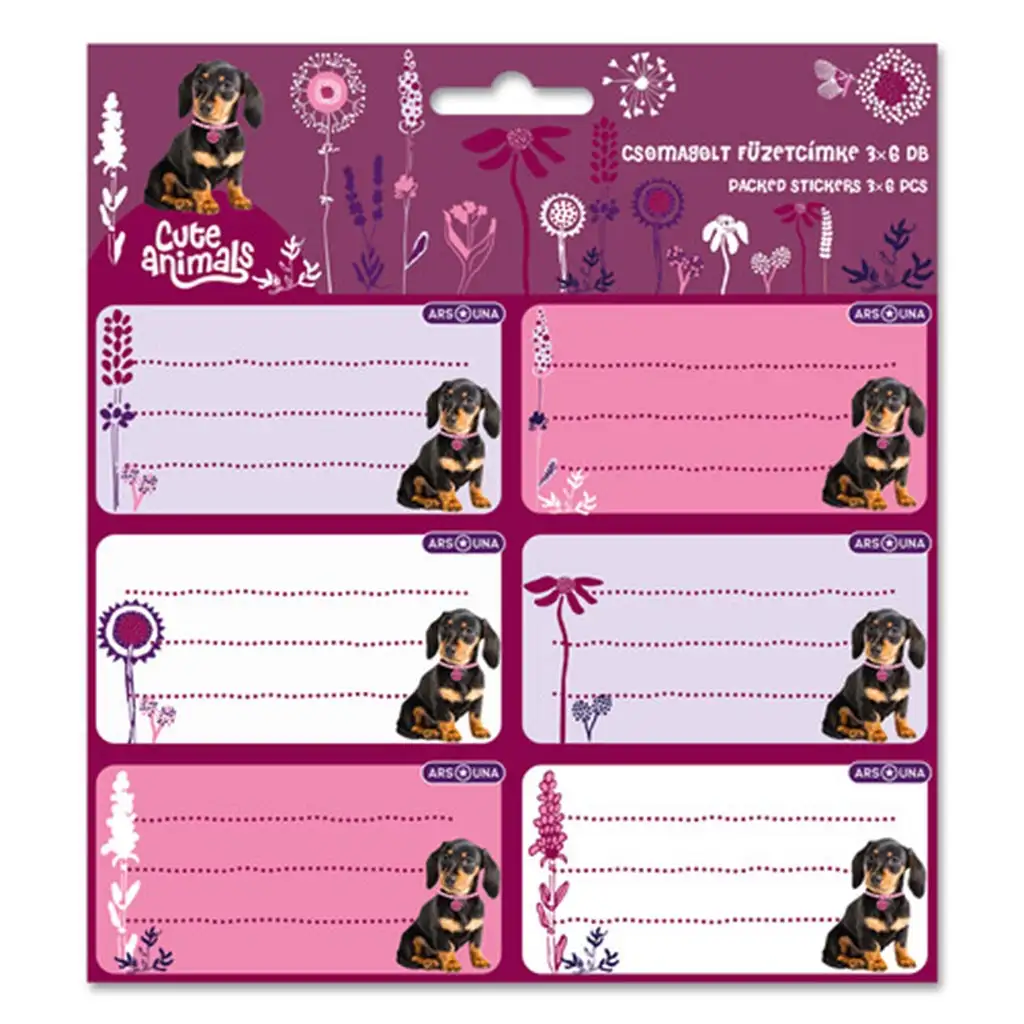 Ars Una: Ljubke živali - Paket nalepk za zvezke s psi 3x6 kosov