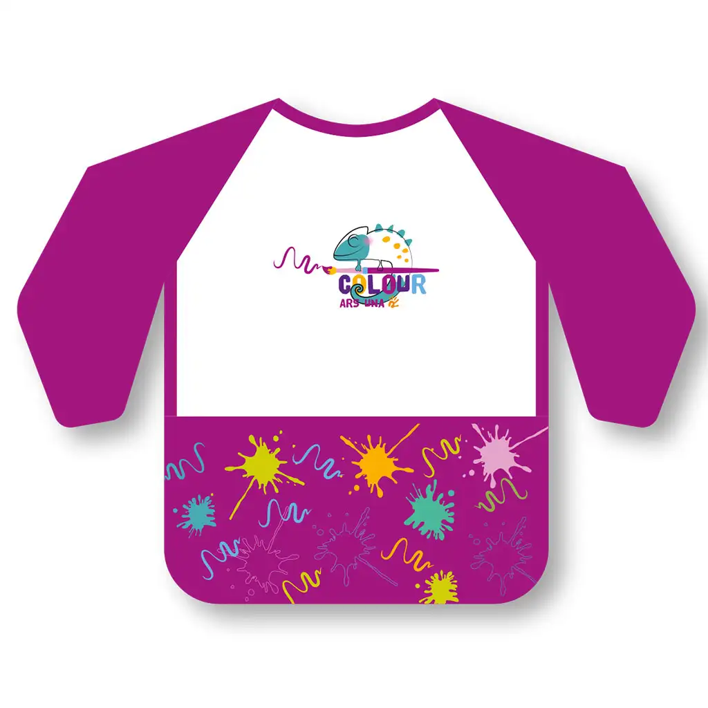 Pink Splash dolgo predpasnik z dolgimi rokavi je popolna izbira, če želiš, da tvoj otrok ustvarja svobodno, ne da bi se pri tem umazal po oblačilih. Vesela, rožnato-vijolična barvna kombinacija in žep z barvitimi packami nista le praktična, temveč tudi igriva detajla, ki ju bodo malčki oboževali. Vodoodbojni material preprečuje, da bi barva, lepilo ali druge ustvarjalne snovi prešle skozi tkanino, tako da se otrok lahko brez skrbi prepusti umetniškemu ustvarjanju. Trije praktični žepi omogočajo shranjevanje čopičev, svinčnikov ali majhnih dodatkov. Predpasnik je opremljen z zanko za obešanje, zato ga je mogoče enostavno namestiti na obešalnik, piši-briši napisna tablica pa poskrbi, da bo vedno našel pot nazaj do svojega lastnika. Priporočljivo za otroke od 3 do 7 let.
