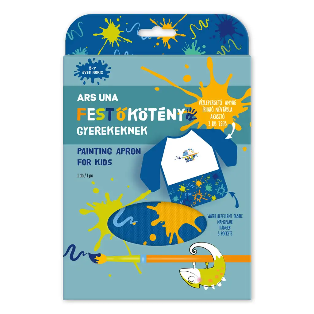 Blue Splash dolgo predpasnik z dolgimi rokavi je idealna izbira za vse ustvarjalne malčke, ki radi slikajo, rišejo ali ustvarjajo! Ta predpasnik iz vodoodbojnega materiala ščiti oblačila pred barvo, lepilom in drugimi madeži, tako da se tvoj otrok lahko brez skrbi prepusti ustvarjanju brez strahu pred packami. Dolgi rokavi nudijo še popolnejšo zaščito, trije žepi na spodnjem delu predpasnika pa so kot nalašč za shranjevanje čopičev, barvic ali malih zakladov. S kljukico pri vratu ga enostavno obesiš, na zapisljiv napisni listek pa lahko napišeš ime, zato se v vrtcu ali šoli nikoli ne zamenja. Vesela modra barva, barvite packe in mala kameleon figurica naredita ustvarjanje še bolj zabavno!