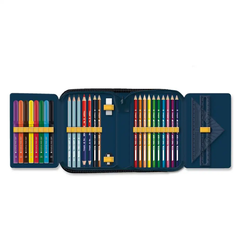 Peresnica ima tri zavihke s pregledno in urejeno notranjostjo. Set vključuje 12 barvic in 8 barvnih flomastrov, s katerimi bodo likovni pouk in ustvarjalne naloge v veselje. Poleg tega so v peresnici še 3 grafitni svinčniki HB, radirka, šilček ter ravnilo in trikotnik. Praktičen urnik z razporeditvijo za A in B teden pomaga, da je mali ninja vedno pripravljen na šolske obveznosti.