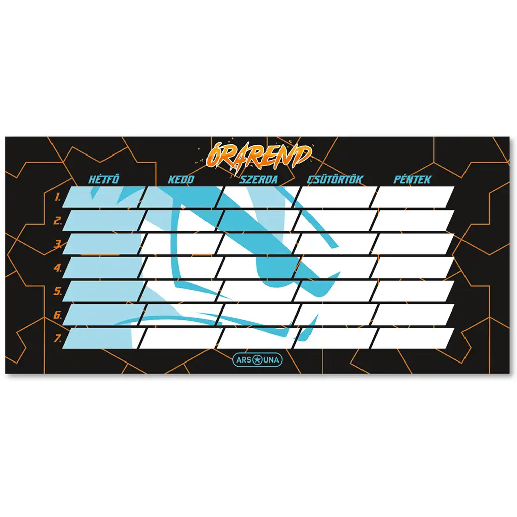 Spoznaj urnik Ars Una Player One, ki je dinamičen in stilski dodatek za vsakega gamerja dijaka. Ta urnik je okrašen s črnimi in oranžnimi črtami, kar mu daje ne le praktičen, temveč tudi kul in moderen videz, ki bo popestril vsak tvoj dan.