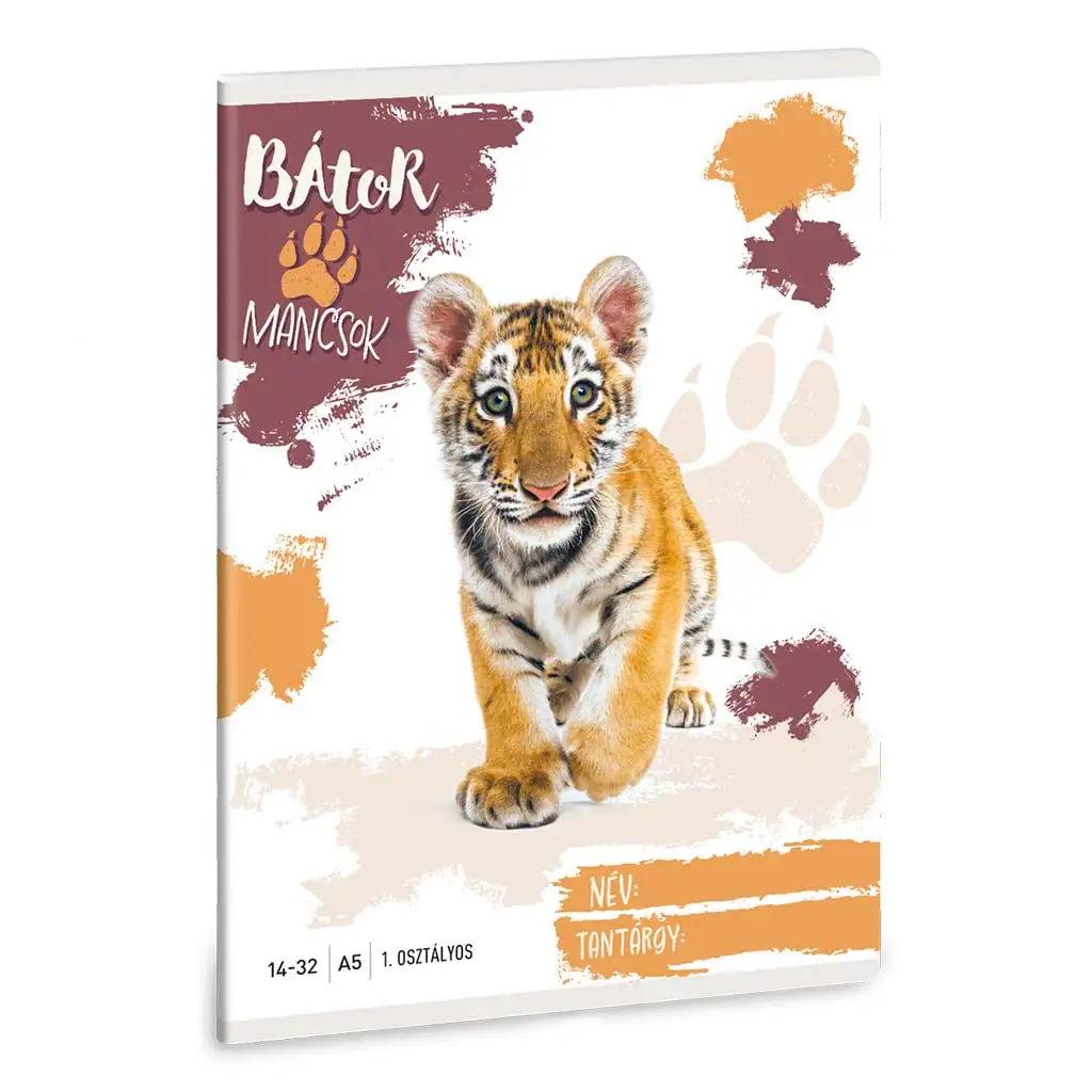Ta vesel in navdihujoč zvezek je idealna izbira za najmlajše šolarje, ki se pravkar začenjajo učiti osnov pisanja. Na naslovnici je prikazan pogumen in radoveden tigrček, ki spodbuja pustolovščino in samozavest, ter spodbuja vašega otroka k premagovanju novih izzivov. Sodobna zasnova z barvnimi madeži in odtisi tačk v odtenkih oranžne, bordo in bež barve naredi ta zvezek še prijaznejši, tako da ga otroci vsak dan radi vzamejo v roke.