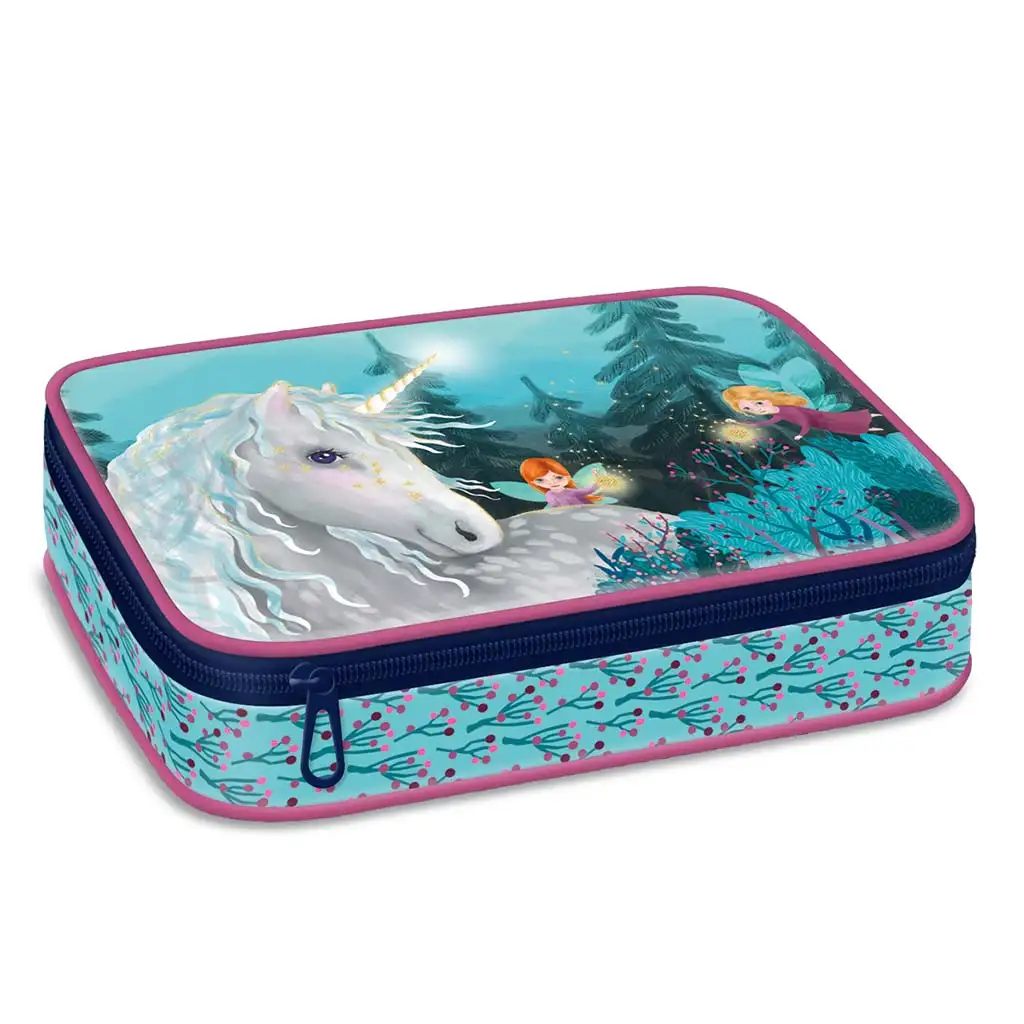 Stardust večnadstropni peresnik prinaša pravo čarobno svet v šolo! Bel samorog z bleščečim rogom in pravljice prizori z vilami vzbudijo domišljijo vsakega šolarja, hkrati pa praktična zasnova peresnika pomaga pri vsakodnevni organizaciji. Svetlo modra in roza osnovna barva s ​​srečnim, gozdnim vzorcem še dodatno popestri ta šolski dodatek.