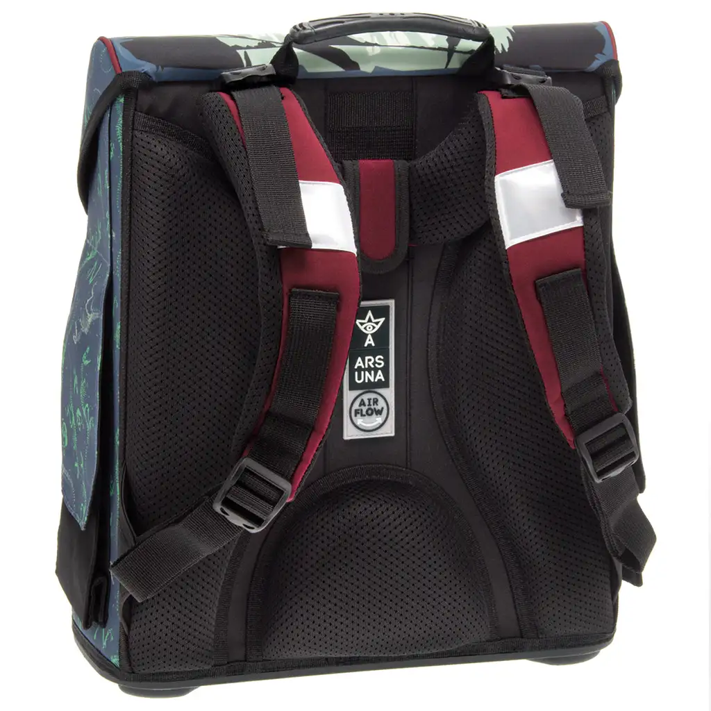 Šolski nahrbtnik Ars Una skrbi za zdravje hrbtenice tvojega otroka. Debelo oblazinjeno, ergonomsko oblikovano hrbtišče zagotavlja optimalno držo, mehki naramniki pa so nastavljivi na več točkah, tako da se prilagodijo višini in postavi vsakega otroka.
