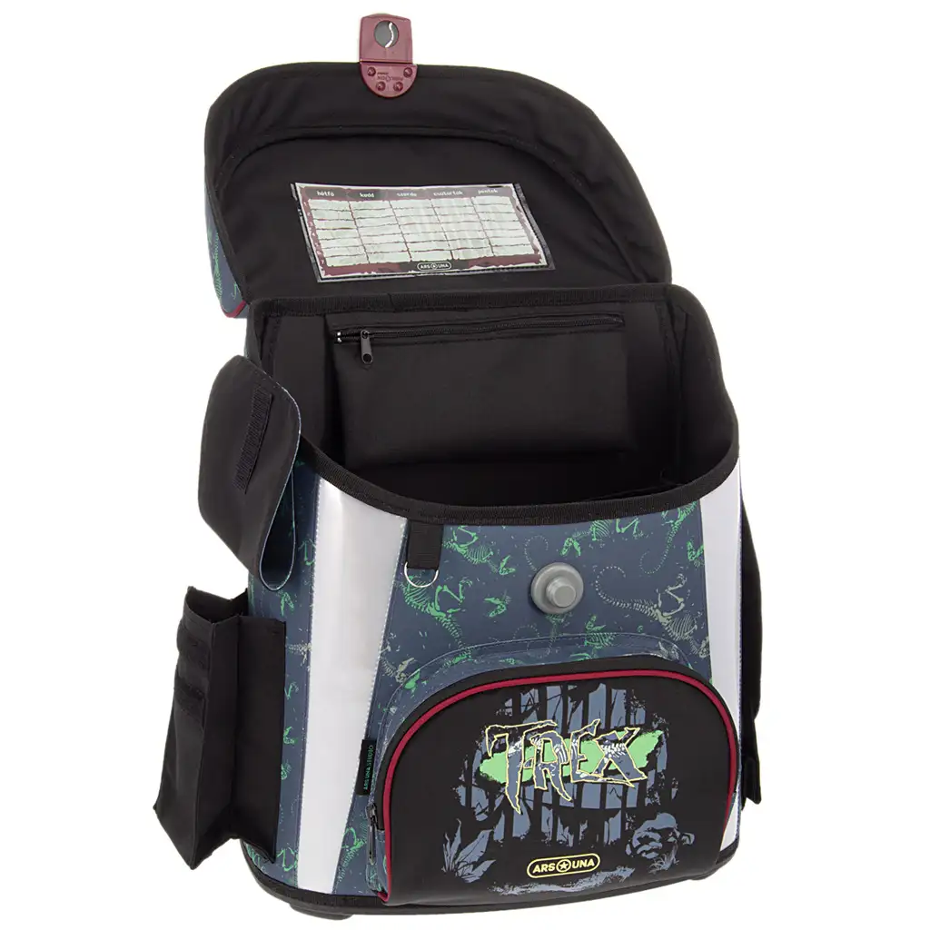 Iščeš popoln šolski nahrbtnik za svojega sina? V tem šolskem nahrbtniku T-Rex z magnetnim zapiranjem boš našel vse, kar potrebuješ: ergonomsko oblikovanje, lahkotnost in seveda stil! Dinozavrska grafika bo navdušila ne samo tvojega otroka, ampak tudi tebe, saj je poleg tega, da je peresno lahek, prijazen do hrbtenice in praktično organiziran. Poleg tega, da zagotavlja dolgotrajno uporabo, nudimo 3-letno garancijo!