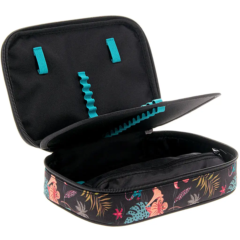 Tahiti večnadstropna peresnica od Ars Una je res privlačna in praktična izbira za vsakega ustvarjalnega in organiziranega šolarja. Egzotičen, tropski cvetlični dizajn peresnice vas takoj popelje na oddaljen, s soncem obsijan otok – vzorci v živahnih barvah na črni podlagi zagotavljajo edinstven videz, ki ga ni mogoče spregledati.