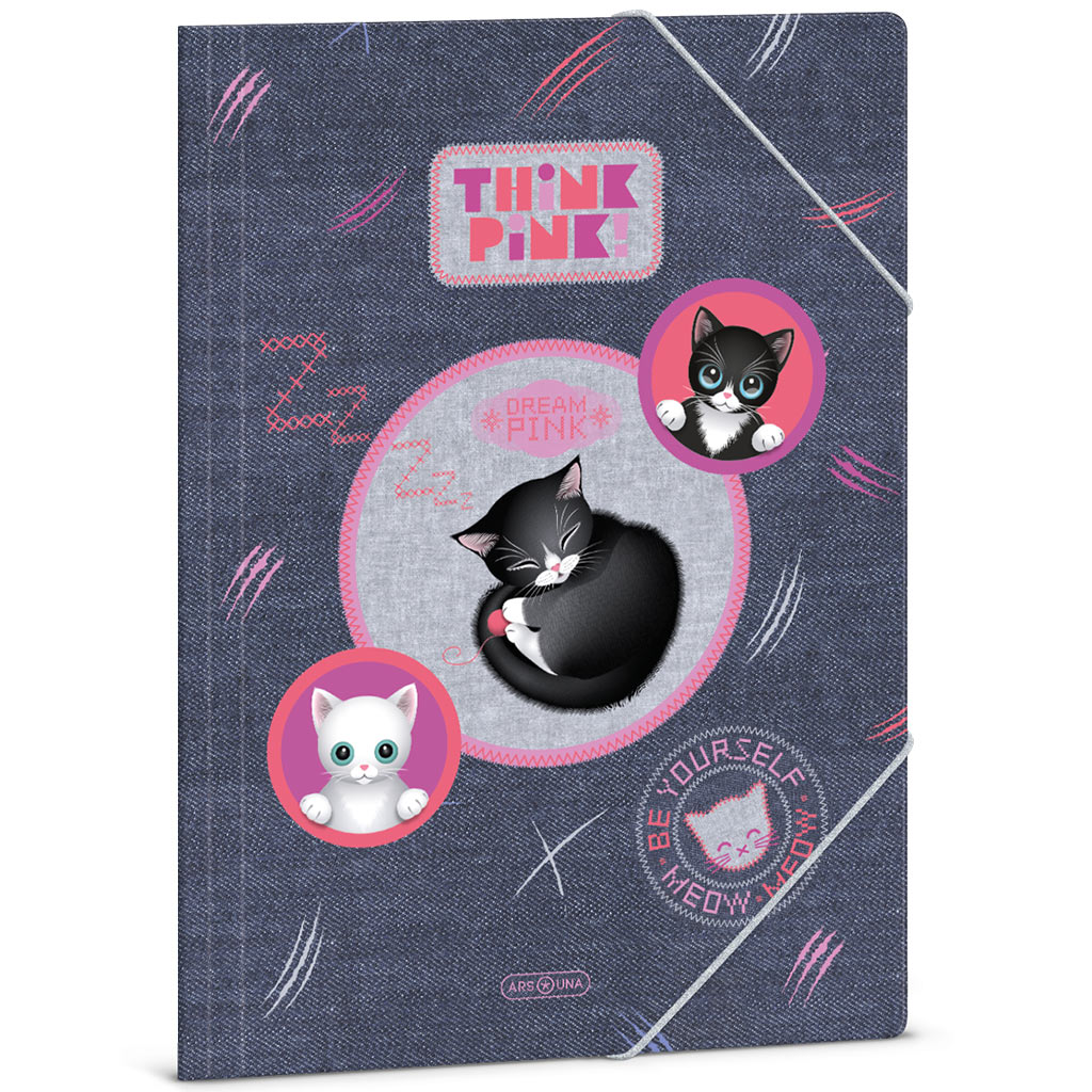 Ars Una: Think Pink prisrčna mačja mapa z elastiko, velikost A4Ars Una: Think Pink prisrčna mačja mapa z elastiko, velikost A4