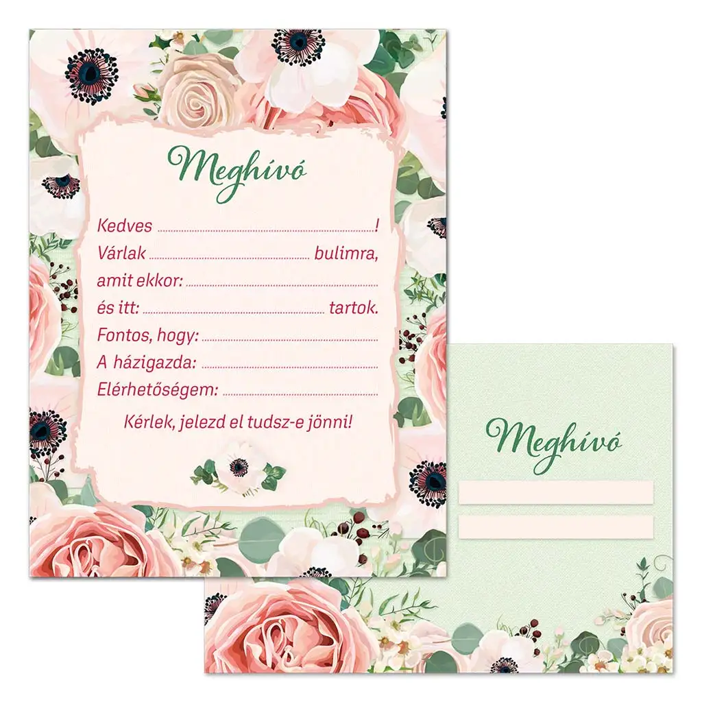 To vabilo za zabavo z motivom vrtnic izžareva pravo eleganco in je popolna izbira za posebne priložnosti, kot so rojstnodnevne zabave, krsti ali celo stilska napoved prijateljskega srečanja. Okrasitev vabila sestavljajo vrtnice v pastelnih odtenkih, maki in zelene listi, ki nežno uokvirjajo besedilno polje v sredini. Klasična, a hkrati očarljiva zasnova bo navdušila vse generacije.