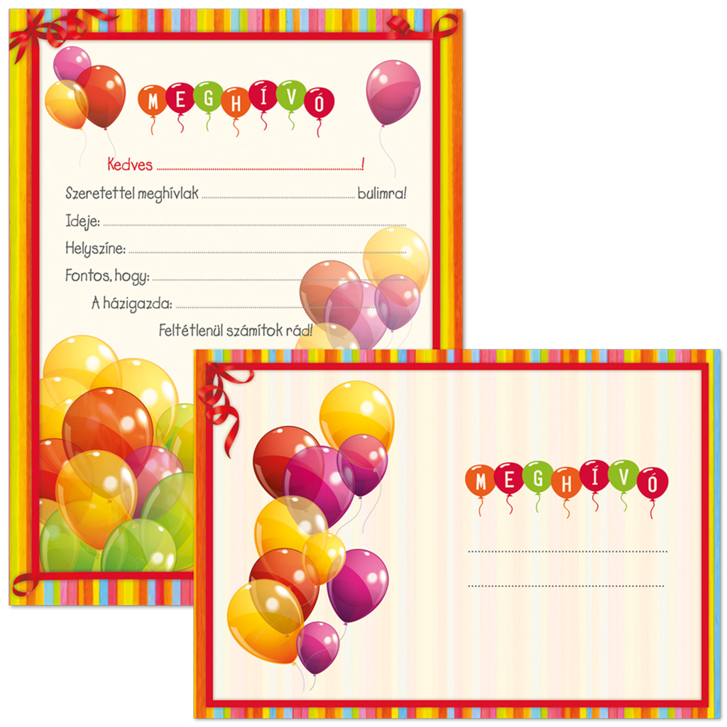 Ars Una: Vesel 10-delni komplet vabil z baloni s kuvertoArs Una: Vesel 10-delni komplet vabil z baloni s kuverto