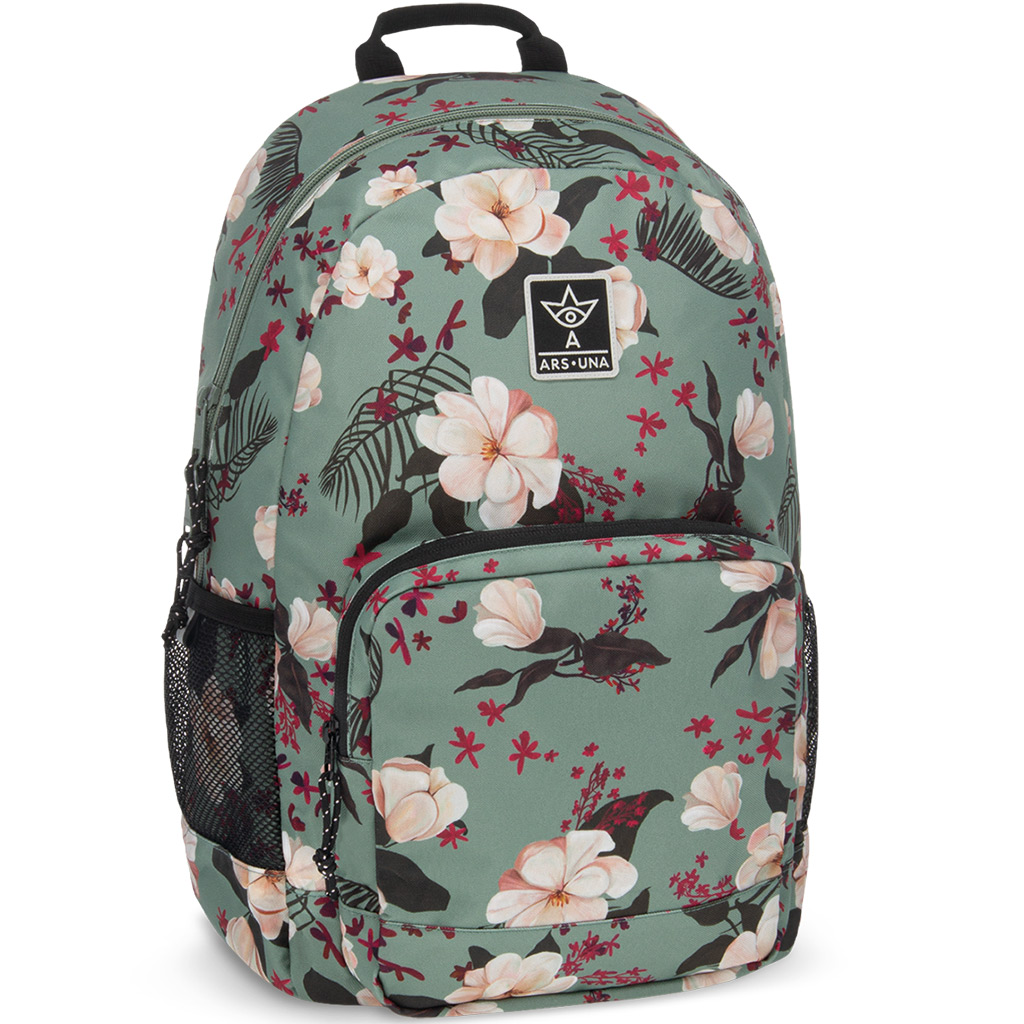 Ars Una: zelen šolski nahrbtnik s cvetličnim vzorcem AU-14 32x51x25cm