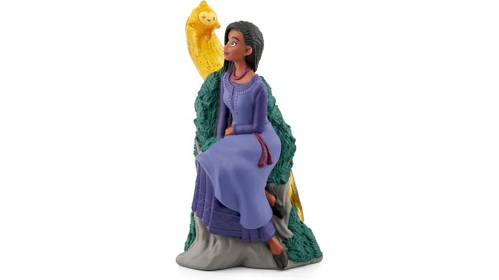 Wish Tonie vsebuje dve številki: pesem "Im A Star" iz filma in zgodbo o tem, kako Asha in Star rešita Rosast pred King Magnifico. Skupno trajanje Tonie je več kot 40 minut, kar je popolno za večerno pripovedovanje pred spanjem ali sprostitev po dolgem dnevu igranja!Med drugimi Disneyjevimi Tonies lahko najdete zgodbe iz "Dama in potepuh", "Neverjetni", "Lilo & Stitch" in še veliko drugih pravljic. Tudi če čakate, da bo "Wish" na voljo na storitvah pretakanja, preden se zberete, da bi si ga ogledali, lahko otroci uživajo v Ashini zgodbi na nov način s pomočjo Tonies!Otroci lahko postavijo to Asha in Star tonie figurico na Toniebox, da poslušajo pesem "Im A Star" iz muzikala "Wish" in zgodbo o tem, kako so rešili Rosas iz rok King Magnifico!