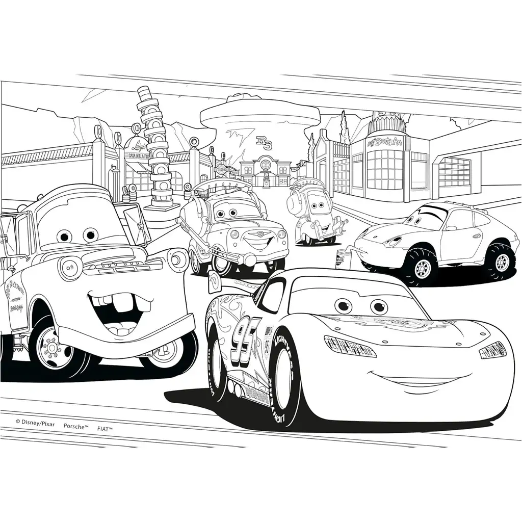 Kul avtomobili, spektakularne dirke in prizori, ki čakajo na barvanje – vse to najdeš v kompletu Cars 2 v 1 z dvema maxi puzzlama po 24 kosov in pobarvanko! Strela McQueen, Vlečko in njuni prijatelji se vračajo na dveh različnih slikah, ki jih otroci lahko sestavijo iz 24 velikih kosov sestavljanke. Sestavljanke velikosti 50×35 cm niso le vizualno privlačne, ampak jih lahko majhni otroci tudi zlahka sestavljajo.