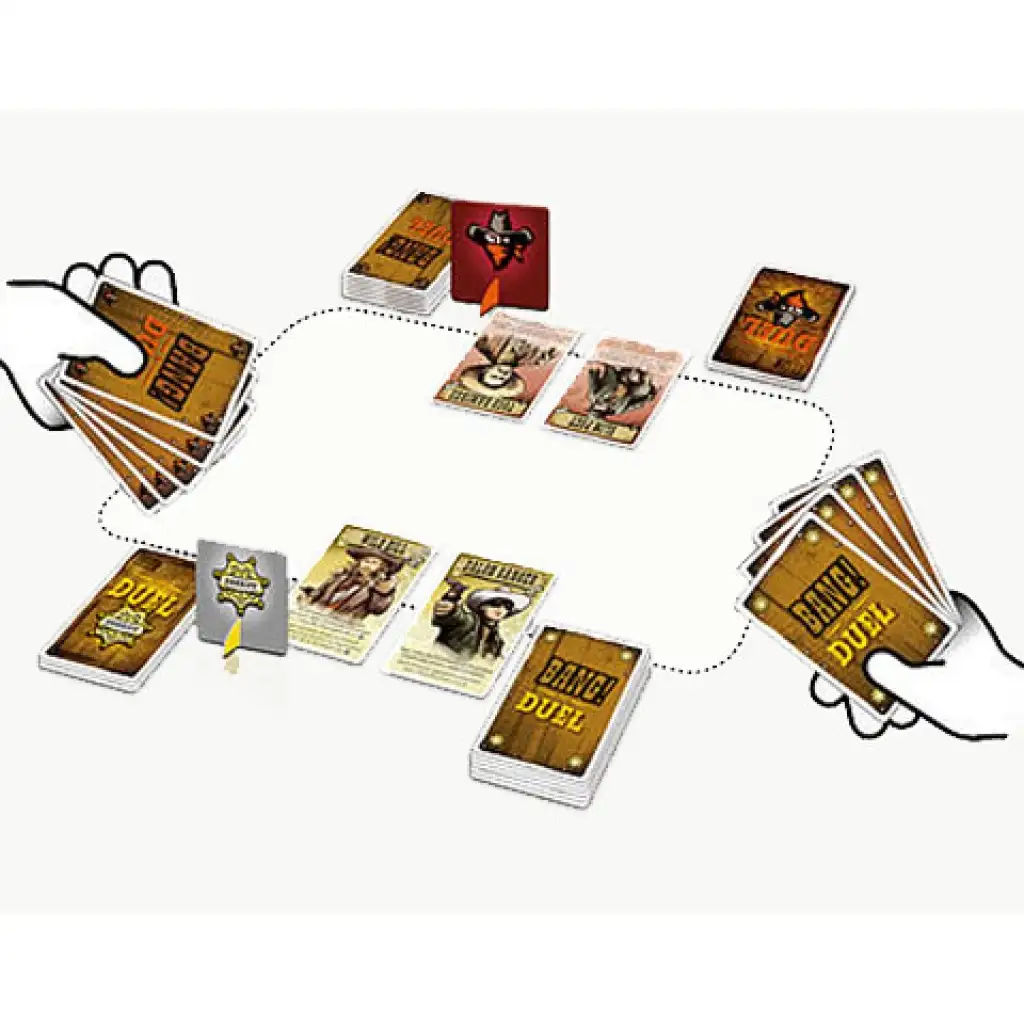 Vroč zrak Divjega zahoda premakne sapica, ki medtem prevrne suhe grme po pusti ulici, kjer se le dve odločni osebi spogledujeta. Na prsih enega se sveti sončna svetloba na svetleči zvezdi, drugi pa si je pravkar potegnil ruto z bradatega obraza. Oba že počivata roke na ročaju Colta, medtem ko domačini z zadržanim dihom opazujejo prizor skozi reže polken. Oba se skoraj hkrati premakneta in orožje sproži. BANG! BANG! Dobro znana in izjemno priljubljena igra Bang! zdaj igralcem ponuja dvosebno različico. Seveda nova igra prinaša tudi nova pravila, vendar bomo v tej različici ponovno videli karte Sod, Dinamit in Zgrešeno.