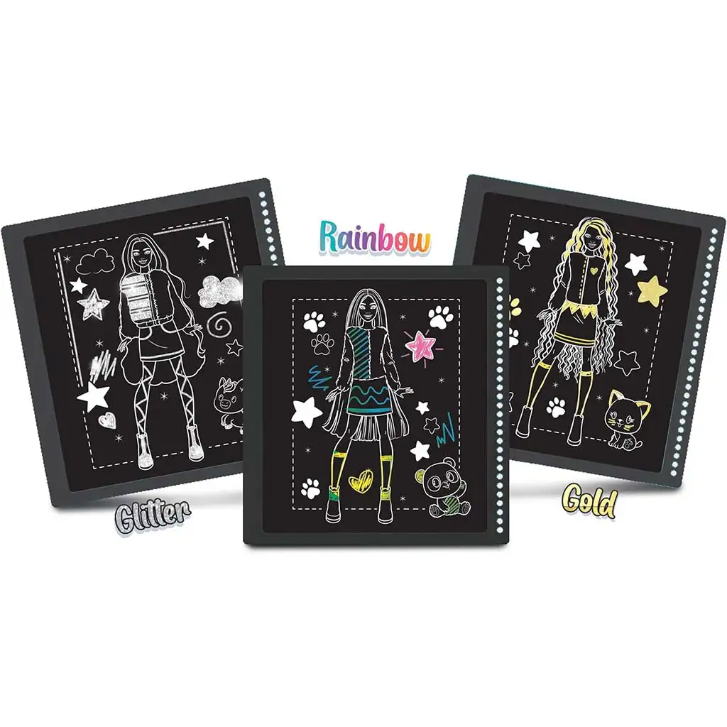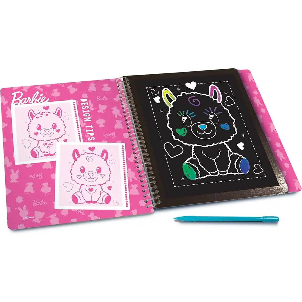 Barbie Cutie komplet za ustvarjanje s praskanko ponuja izjemno ustvarjalno izkušnjo risanja za otroke, ki obožujejo bleščeče barve in prikupne vzorce! V tej 44-stranski spiralni beležki lahko otroci s praskalnim svinčnikom razkrivajo skrite vzorce, ki žarijo v mavričnih, zlatih in bleščečih barvah. Med posebnimi listi so oblačilne Barbie figure, prikupne živalice in različni modni elementi, zato deklice lahko istočasno izrazijo svojo ustvarjalnost in občutek za stil.