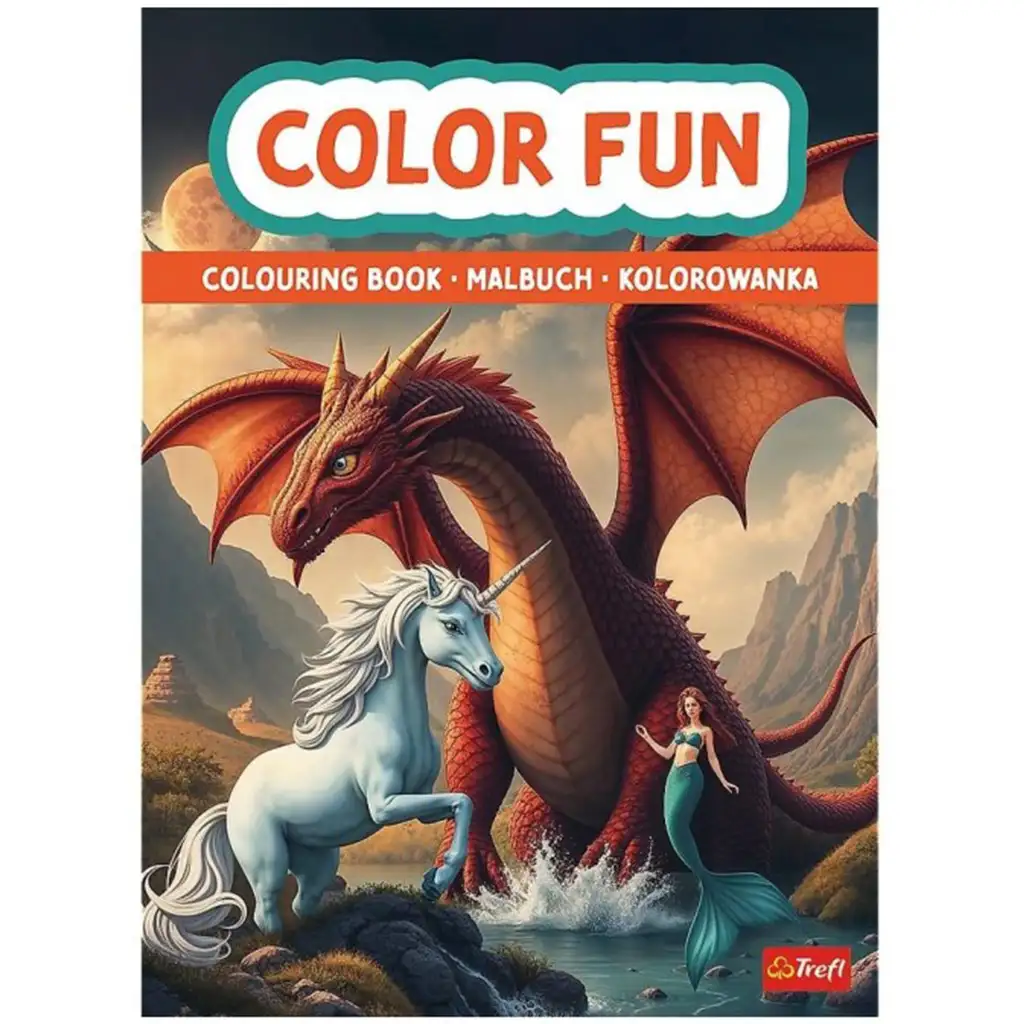 Potopi se v kraljestvo domišljije s pobarvanko Color Fun – Čarobni svet, kjer se otroci srečajo z ognjebrhujočimi zmaji, modrimi samorogi, prijaznimi morskimi deklicami in drugimi pravljičnimi bitji! Ta posebna pobarvanka ne nudi le zabave, ampak obenem razvija tudi ročne spretnosti, ustvarjalnost in koncentracijo otrok. Čudovite in podrobne ilustracije spodbujajo najmlajše, da s svojimi barvami oživijo čarobne prizore in pri tem vse bolj izpopolnjujejo svoje spretnosti pri barvanju.