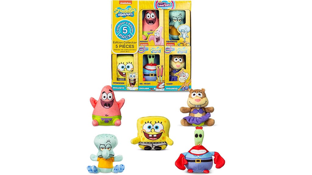 V zbirki plišastih figuric Micro Teenies Spuži Kvadratnik najdete Spužija Kvadratnika, Patrika, Gospoda Raka, Sandy in Lignja. Te prikupne in podrobno izdelane plišaste igrače so popolne za vse oboževalce, ki želijo svoje najljubše like vzeti s seboj kamorkoli. Vsak član serije ima edinstven videz in ljubko, skrbno izdelavo, zato so odlična izbira tako za zbiratelje kot za otroke.Ti plišasti so popolne velikosti, da jih lahko vzameš s seboj na potovanje, saj se zlahka prilegajo v nahrbtnik ali drugo torbo, ne da bi zavzeli preveč prostora. Poleg tega so izjemno mehki, zato jih otroci lahko udobno uporabljajo na daljših vožnjah z avtom, na letalu ali med katerokoli drugo pustolovščino, kjer je malo prostora. Paket vsebuje vseh pet likov, tako da bodo otroci zagotovo našli svojega najljubšega med njimi. Ti plišasti niso le praktični in udobni, ampak tudi razveselijo najmlajše, ne glede na to, ali so doma ali na poti.