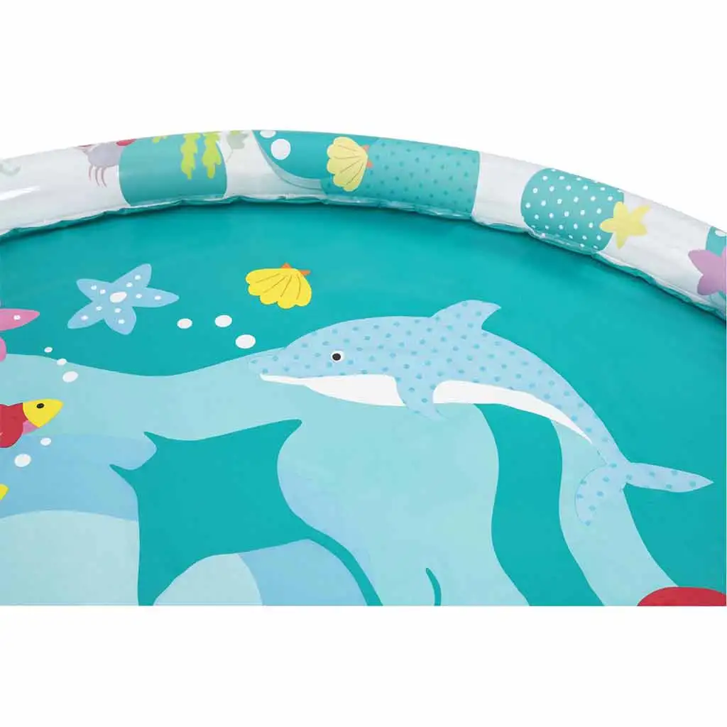 Pripravite se na poletne dogodivščine z napihljivim bazenom Bestway, ki je popolna izbira za vsakega malega ljubitelja vode. Ta bazen s premerom 165 cm, z morsko tematiko, ne nudi le osvežilnega zatočišča v vročih poletnih dneh, ampak z vgrajenim škropilnim sistemom zagotavlja tudi zabavno igralno izkušnjo. Čudovit dizajn z motivom podvodnega sveta, ki prikazuje delfine, hobotnice in pisane ribe, spodbuja otroško domišljijo medtem ko se pljuskajo in igrajo.