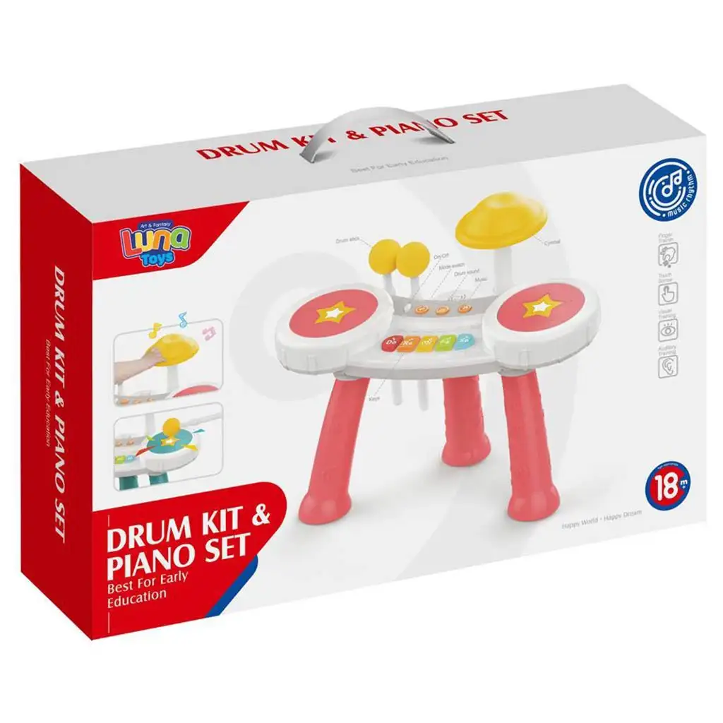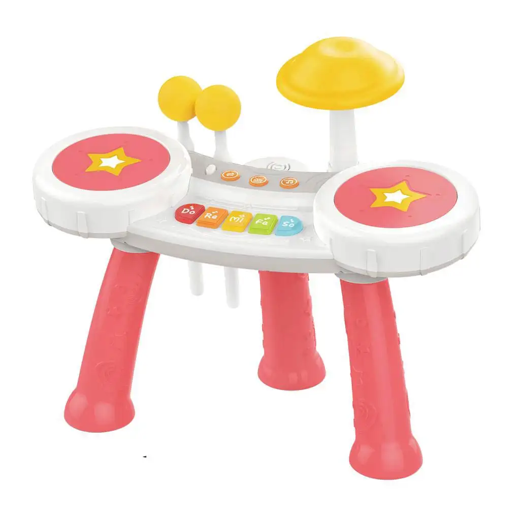 Potopite se v svet glasbe s tem edinstvenim 2-v-1 glasbenim instrumentom, ki je bil posebej zasnovan za ljubitelje ritma in melodij. To je roza barvni, visokokakovostni instrument, ki se lahko uporablja kot boben in klavir, kar omogoča otrokom, da se izražajo na širokem spektru glasbenih področij. Bobnarski set je idealen za tiste, ki uživajo v ritmu. Bobni zvenijo v različnih velikostih in tonih, kar zagotavlja edinstven zvok, ko jih udarimo.