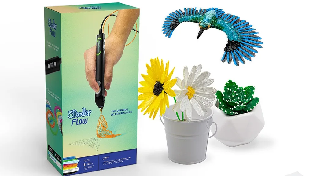 Pero lahko zataknete v steno, tako da se ne izprazni, in v škatli dobite osem različnih barv plastike, skupaj 80 čevljev, tako da lahko takoj začnete z veliko projekti. Čeprav se to pero zelo segreje in ga večinoma uporabljajo starejši najstniki in odrasli, če iščete otrokom prijazno možnost, je pero 3Doodler Start odlično za otroke, stare 8 let!3Doodler Flow je uporabniku prijazno, odprto ustvarjalno orodje, ki spada med tiste izdelke, ki so "preveč dobri, da bi bili resnični". Ponuja zen podobno umetniško izkušnjo in ustvarja osupljive rezultate za domača darila, umetniška dela in še veliko več.S tem kompletom lahko najstniki sami rešujejo vsakodnevne težave, ustvarjajo umetnost, načrtujejo stvari in prilagajajo svoj prostor. Lahko risajo prosto roko ali uporabijo enega od stotin brezplačnih projektov, ki so na voljo na internetu, za ustvarjanje 3D stvaritev.