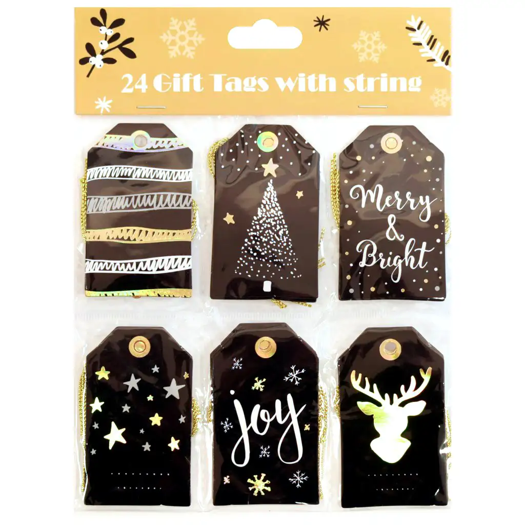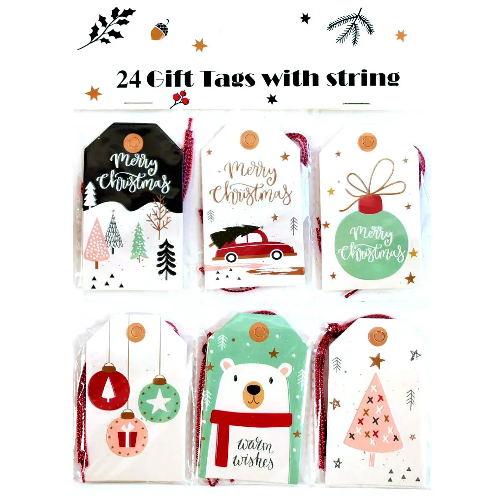 Vsak komplet vsebuje 24 unikatnih etiket za darila, vsaka z majhno obešanko. Tako lahko vsako darilo dobi edinstveno oznako, bodisi osebno sporočilo ali navedbo imena obdarovanca in obdarovalca. Etikete niso samo praktične, ampak tudi popestrijo pakiranje daril in prispevajo k ustvarjanju božičnega vzdušja.