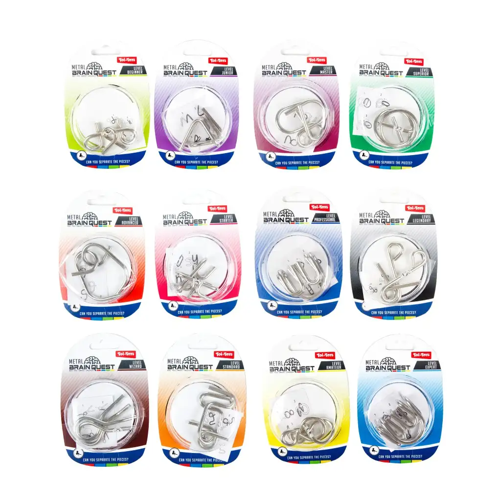Preizkusi svoj um z ugankami Brain Quest! Te edinstvene kovinske uganke so idealne za vse starosti, ki uživajo v logičnih izzivih. Uganke Brain Quest so na voljo v različnih težavnostnih stopnjah, tako da lahko začetniki in napredni najdejo primeren izziv zase. Cilj se zdi preprost: ločiti kovinske dele in jih nato ponovno sestaviti – vendar je to veliko večji izziv, kot se zdi na prvi pogled!