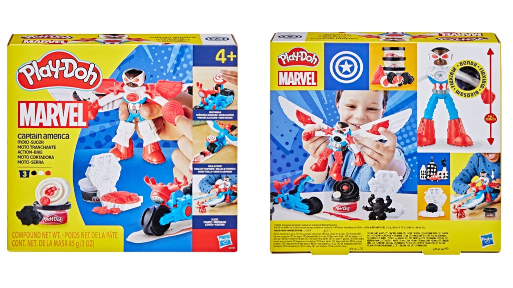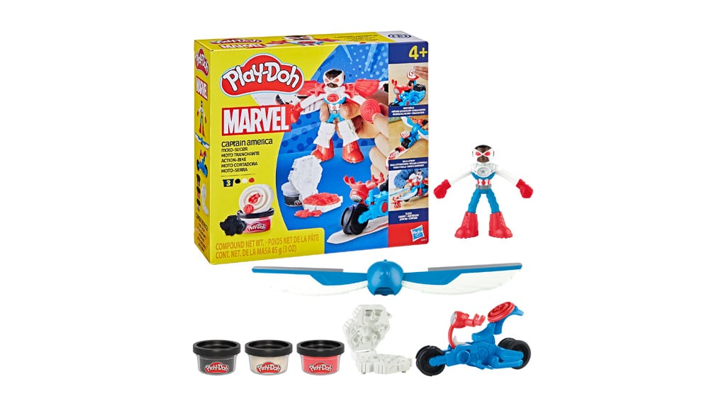 Za družine, ki so oboževalci Marvela, je Hasbro pripravil nov, domoljuben Play-Doh komplet! Marvel Captain America Moto-Slicer komplet vsebuje figuro Sama Wilsona kot prilagodljivega Captain America. Otroci lahko figuro pritrdijo na motor (njegove roke se celo pritrdijo na krmilo), nato pa z motorjem prevozijo barvni Play-Doh, da ustvarijo in režejo zvezde! Mali superjunaki lahko uporabijo oblike za ustvarjanje zlikovcev ali pritrdijo 2-v-1 krila na Captain America ali vozilo, da režejo Play-Doh zločince. Ta komplet ni le zabaven, ampak tudi razvija otrokovo ustvarjalnost in ročne spretnosti, medtem ko se potapljajo v razburljiv svet Marvel vesolja.