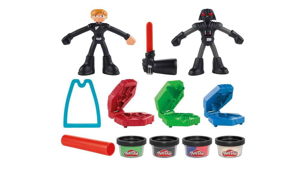 Majhni lahko s pomočjo priloženih kalupov izdelajo Play-Doh plašč za figuro Darth Vaderja, ustvarijo pas Luke Skywalkerja, oblikujejo Play-Doh svetlobni meč in celo ustvarijo svojega mehkega R2D2 ali mračnega Stormtrooperja. Otroci lahko dodajo odstranljiv rdeč svetlobni meč kot dodatek k Darth Vaderju in uporabijo raztegljive figure med svojimi bitkami. Njihovi ustvarjalnosti lahko omeji le domišljija, medtem ko ponovno ustvarjajo svoje najljubše prizore ali izmišljajo lastne zgodbe v vesolju Vojne zvezd. Ta igra ni le zabavna, ampak tudi razvija fine motorične spretnosti in domišljijo.