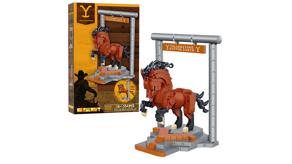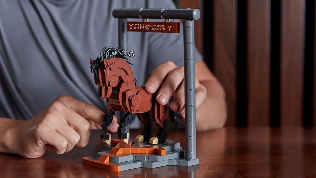 Saga Yellowstone je pravi fenomen, in čeprav se je glavna serija zaključila ob koncu pete sezone lani, se zgodba nadaljuje s predzgodbami 1883 in 1923. Na vidiku so vsaj štiri dodatne spin-off serije, tako da lahko oboževalci, ki se želijo zaposliti do premiere naslednjega dela z naslovom The Madison, sestavijo tega veličastnega konja. Ta konj stoji na skalnati podlagi, ki jo krasi značilni Yellowstone Y, ima premični rep in noge ter se nahaja pod tablo Yellowstone Dutton Ranch.