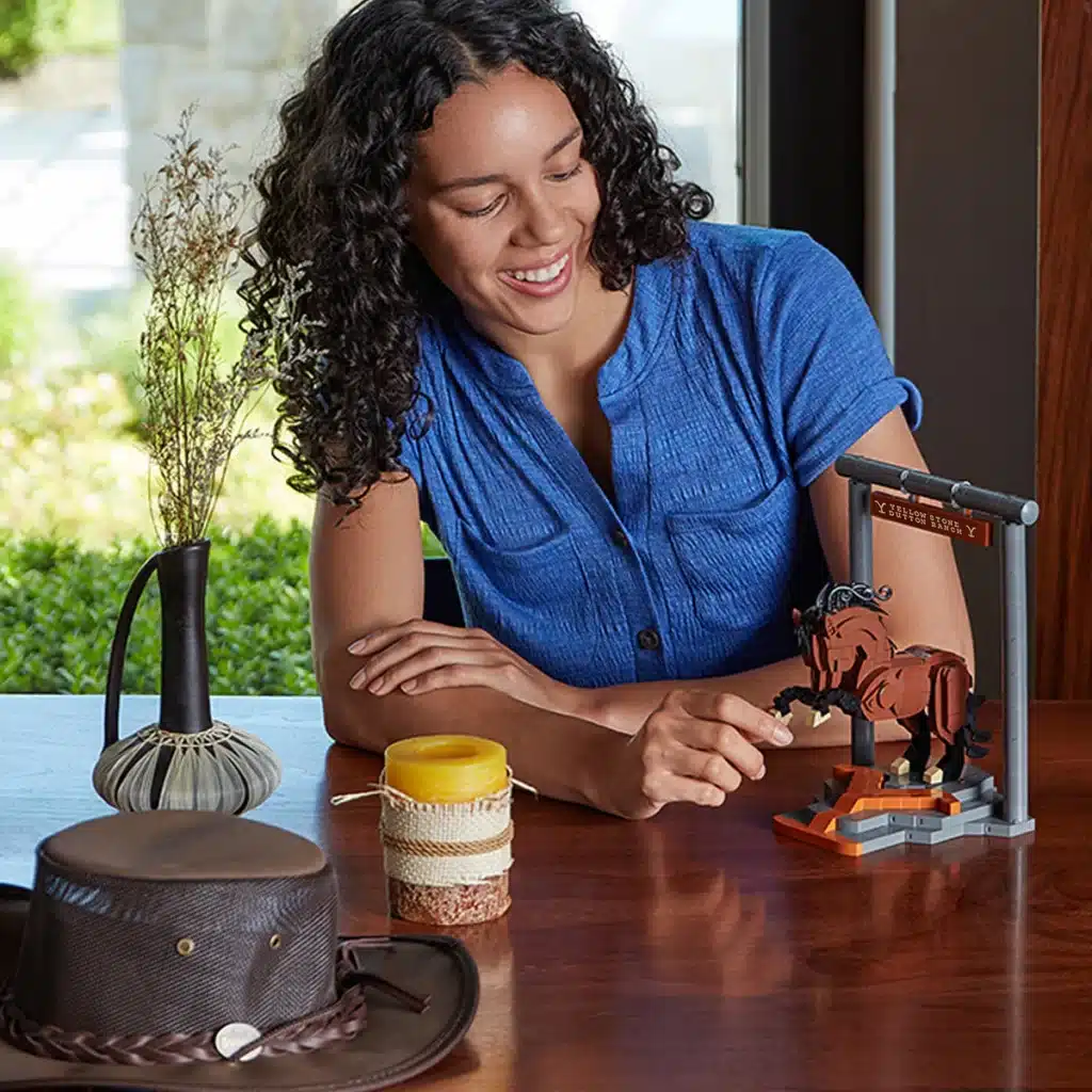 Ta komplet za gradnjo s 554 kosi, ki ga je navdihnila serija Yellowstone, ki jo je ustvaril Taylor Sheridan, prinaša zahodno vzdušje v katero koli sobo vašega doma. Namenjen je graditeljem, starim 16 let in več, artikulirani Yellowstone konj je visok skoraj 9 palcev. Ta komplet ne predstavlja le zabavnega izziva za graditelje, temveč lahko služi tudi kot edinstven dekorativni element, ki prikliče čar divjega zahoda. Natančno izdelane podrobnosti in kakovostni materiali zagotavljajo, da je sestavljanje kompleta pravo doživetje, končni rezultat pa napolni ustvarjalca s ponosom. Komplet je lahko popolno darilo za vse, ki imajo radi kreativno gradnjo in zahodno tematiko.