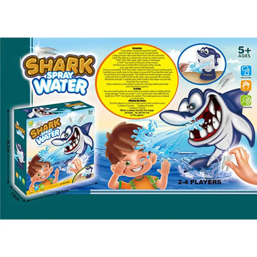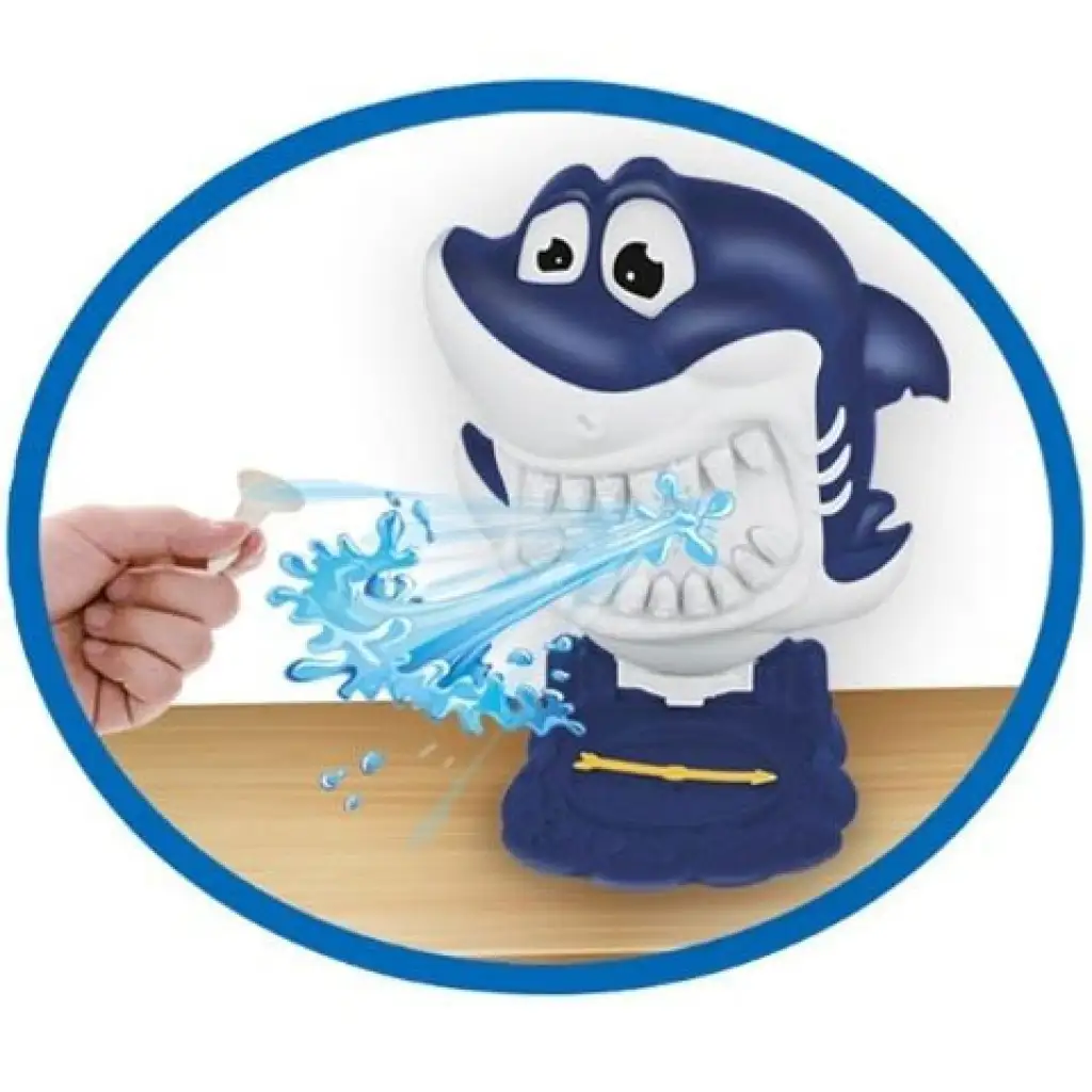 Bistvo družabne igre Brizgajoči morski pes je, da morajo igralci izvleči zobe modrega morskega psa, ne da bi jih po nesreči poškropil z vodo, saj potem izpadejo iz igre. Priprave so zelo enostavne, vstavite brizgo napolnjeno z vodo na ustrezno mesto, vstavite gumijaste zobe enega za drugim v usta morskega psa in igra se lahko začne!