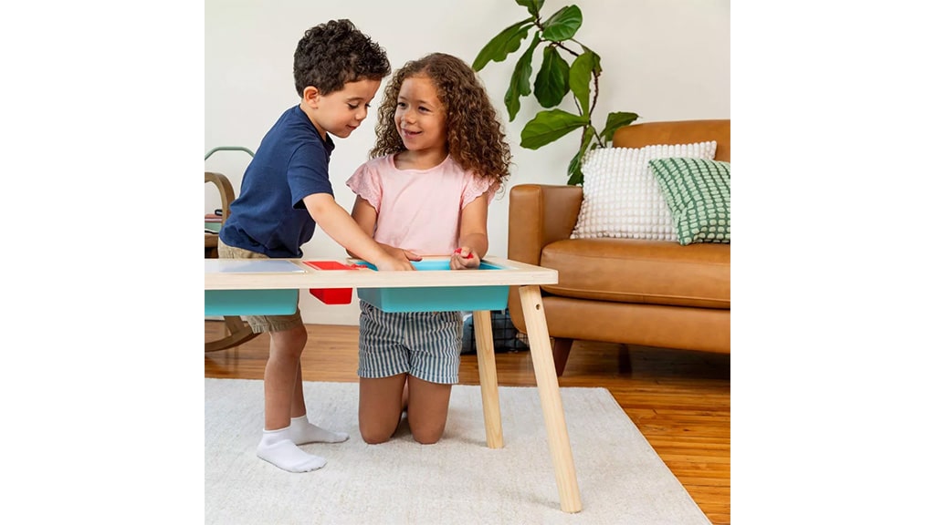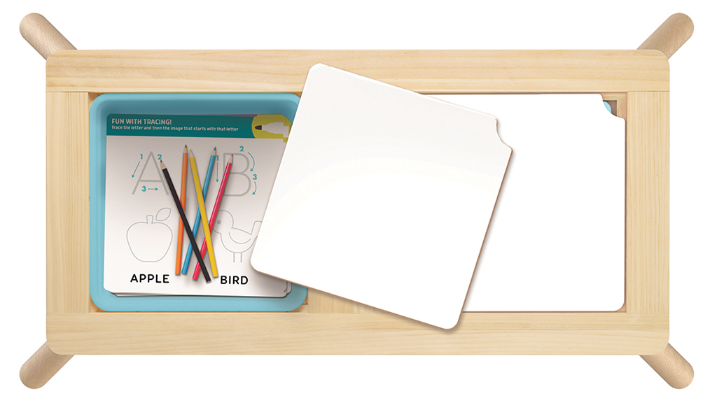 Lahko sestavljiva miza ne zahteva orodja za sestavljanje. Dejavnosti spodbujajo učenje, ustvarjalnost in razvoj finih motoričnih spretnosti. Na koncu igre lahko otroci enostavno pospravijo igrače s pomočjo škatel za shranjevanje in pokrovov. Idealna je za predšolske in mlajše šolske otroke, saj jim pomaga pri razvoju ročnih spretnosti in sposobnosti reševanja problemov.