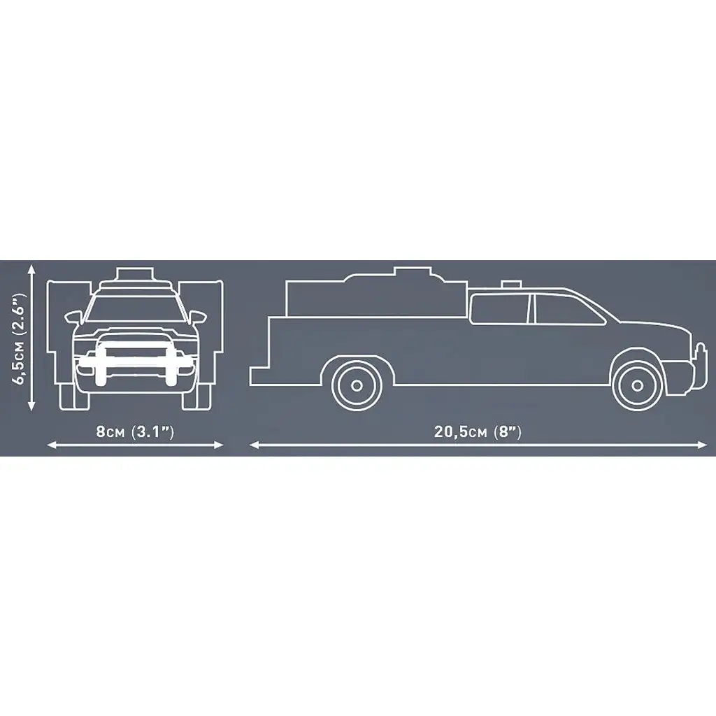 COBI Dodge RAM 3500 gasilski tovornjak iz kock je vozilo, ki ga na ameriških gasilskih postajah odlikujeta moč in zanesljivost. Model v merilu 1:35 je sestavljen iz 358 delov in zaradi podrobne izdelave zvesto prikazuje videz pravega gasilskega tovornjaka. Klasična rdeča barva, potiskane dekoracije in stabilna sestava ga naredijo idealnega tako za igro kot za razstavo. Vrtljiva kolesa z gumijasto oblogo zagotavljajo realistično gibanje, odpirajoči se predali in zadnja vrata pa modelu dodajo interaktivne funkcije.